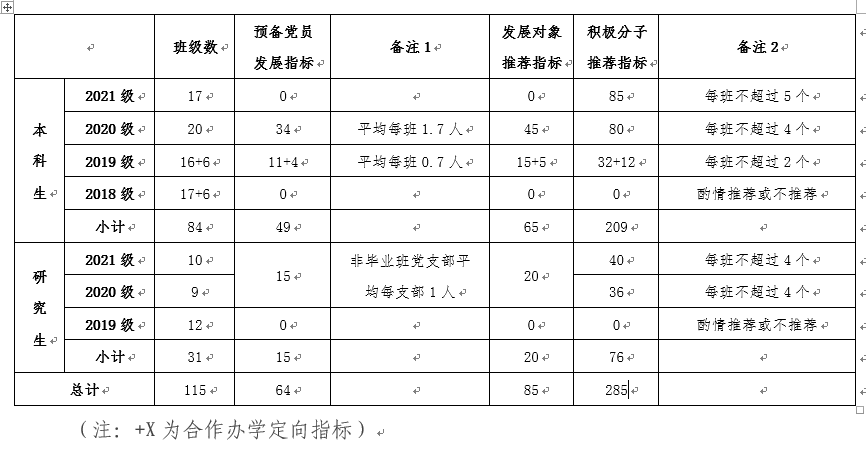经核算,各年级本学期预备党员发展指标、入党积极分子及发展对象推荐指标(上限)如下: