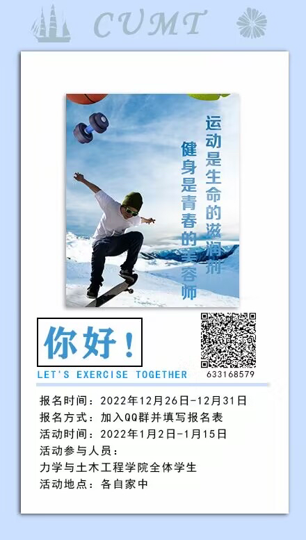 为丰富假期生活,激发同学们的运动热情,弘扬“奉献、友爱、互助、进步”的志愿服务精神,1月2日至1月15日,国产无码