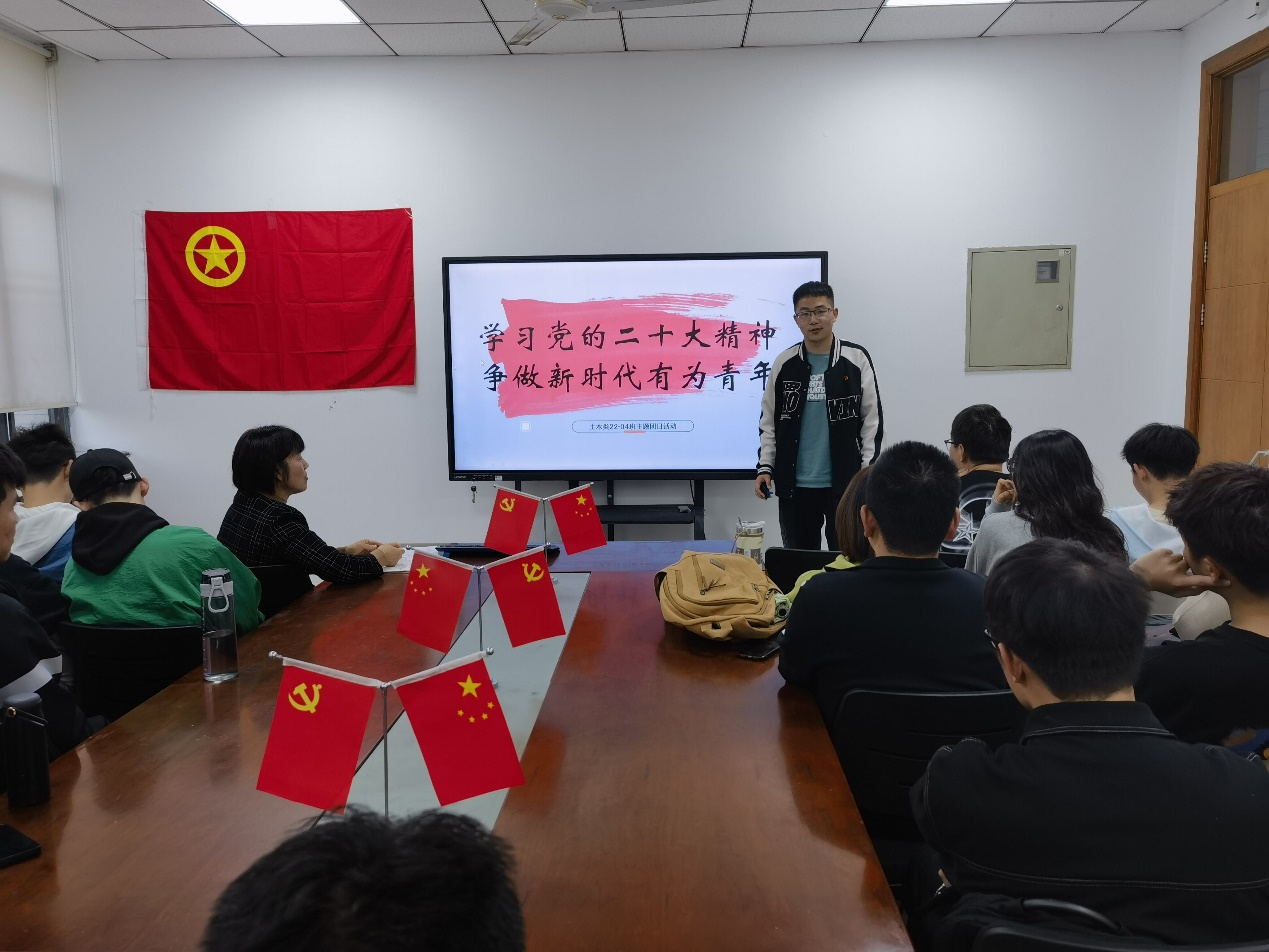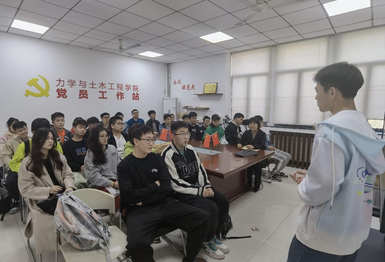土木类2022-04班于力土学院楼党员工作站开展了“青春践行二十大”主题团日活动,本次活动由班长何宇杰同学主持,全班同学和班主任朱玉晓老师参加了本次活动。