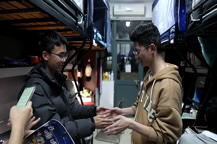 大学生心理自助中心的成员们首先进入宿舍内介绍世界睡眠日的相关知识,让同学们了解了这个节日的设立背景、设立目的以及历年主题。随后,宣传人员带领大家开展了“乌龟与乌贼”这一小游戏,并向同学们发放了奖品,奖品包括耳塞、眼罩、香囊等有助于睡眠的物品。在世界睡眠日有奖问答环节,大家积极主动、踊跃答题,对这个节日有了更多的了解。最后,大家在小黑板上写下了现在的睡眠时间和目标睡眠时间,以及许多鼓励早睡早起的话语。