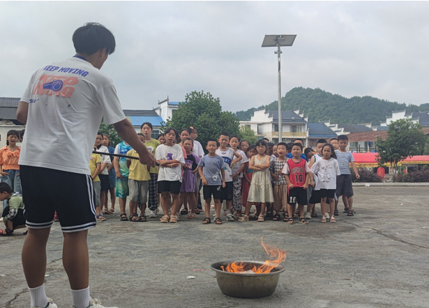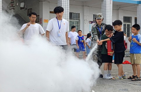 筑梦支教团“筑梦青山”分队于7月24日在贵州省松桃县九龙民族完小开展了“消防进校园,平安到永远”主题消防安全演练。