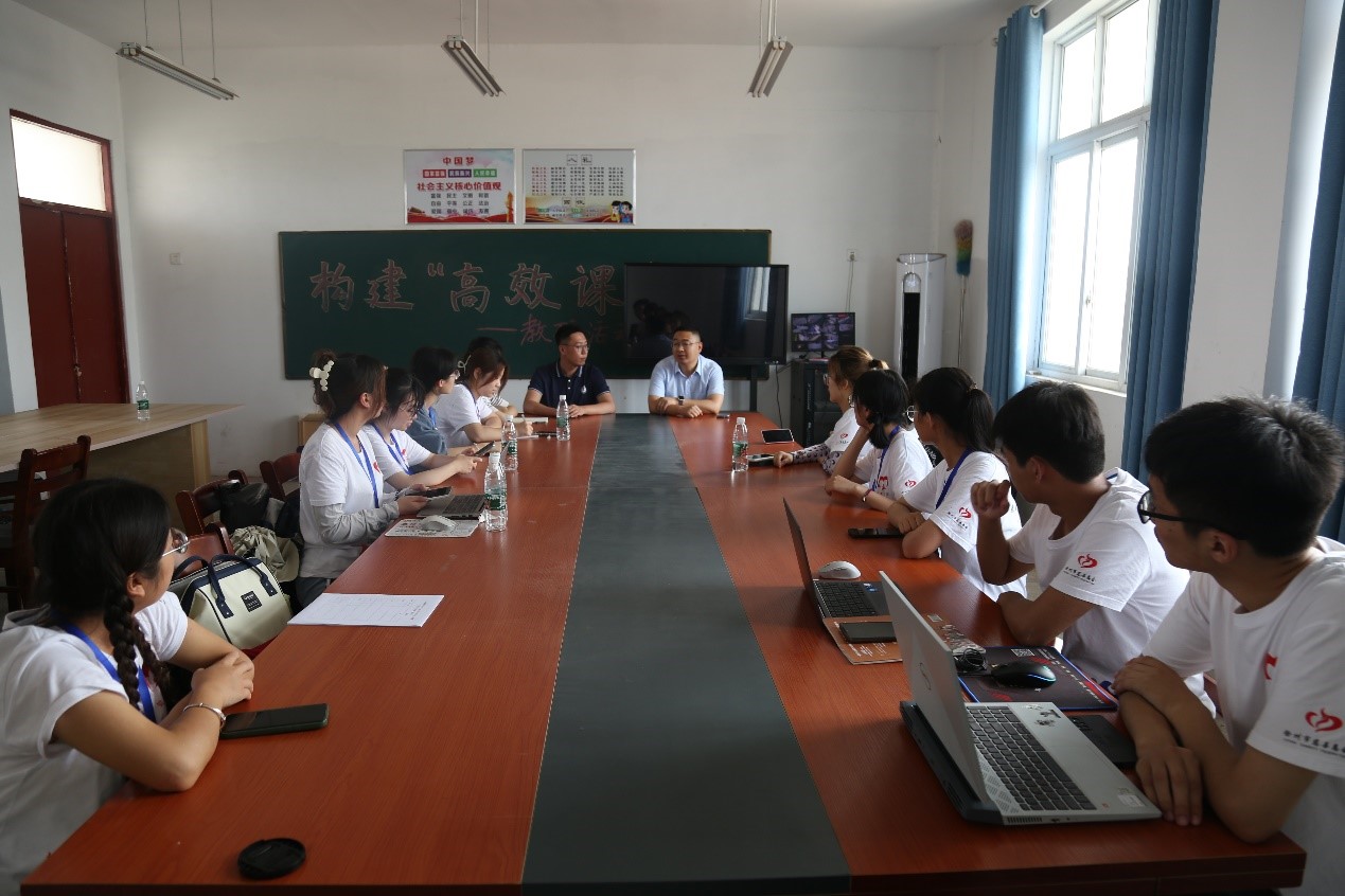 在开营仪式结束后,李智和李亮与支教团成员召开座谈会,李亮针对安全、纪律等问题对支教团成员做出提醒,并提出将对成员们的授课成果进行评定,以督促大家在接下来为期两周的支教活动中认真负责。