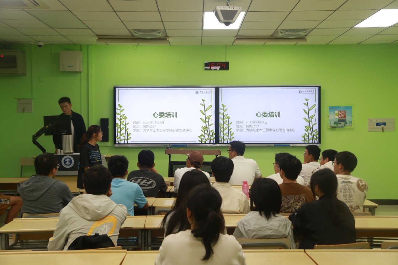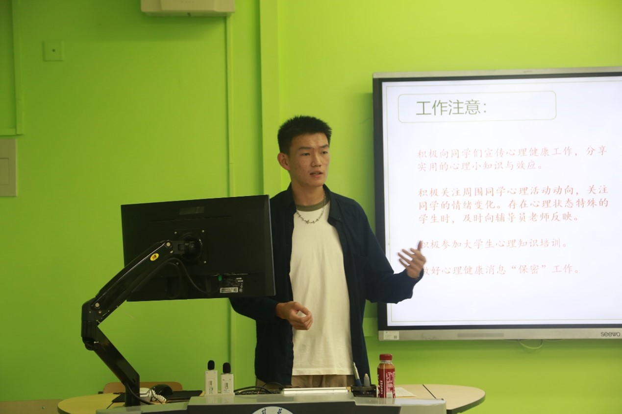 大学生心理自助中心于博四B204举办心理委员培训会。会议由心理部部长芦世钰主持,全体2023级新生心理委员参加。