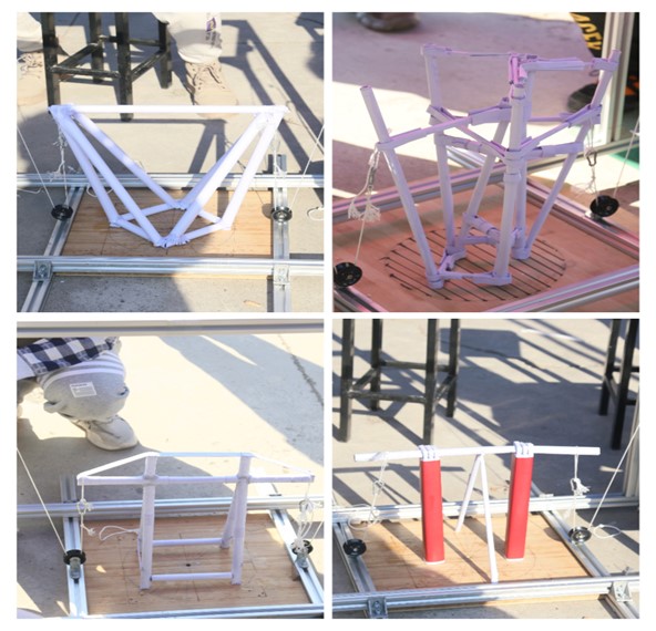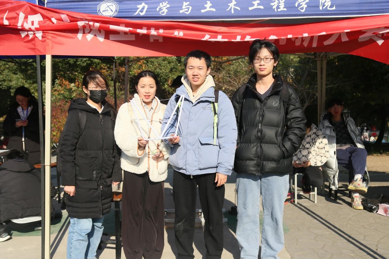 比赛需要参赛选手自由组队,并在规定时间内领取所需材料并完成参赛模型的制作。在比赛开始时,各组选手在工作人员的带领下对参赛模型进行称重,然后进行砝码加载。每个模型需要依次进行五级砝码加载,这需要选手们充分考虑模型的牢固性和美观性。现场气氛紧张而有序,观众们认真关注着实时赛况,不时小声讨论着各类模型的美观性和牢固程度。每当有一个模型是满级加载,现场便会爆发出阵阵掌声,对应小组的人员也难掩激动地与搭建的模型合照留念。而那些未能如愿的队伍则进行复盘,约定明年再战。最终比赛在当日17点落幕。