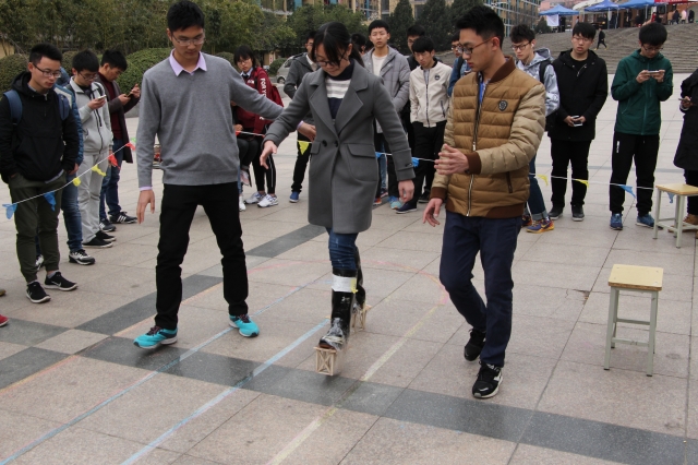 本次结构比赛在模型加载成功的基础上以荷重比评判成绩。专业组比赛旨在考察学生运用力学知识做出合理、经济的抗冲击结构模型的能力,通过不同等级难度的加载,考察模型的稳定性和承重能力。专业组设计制作建筑模型的时间为317日晚7点到319日早上10点,319日下午在土木学院楼前进行了结构加载并进行了角逐。兴趣组则是希望吸引广大非力学专业的同学参与建筑模型制作,提升大家对结构的认识和对动手能力的培养。兴趣组的制作时间为317日晚7点到318日晚上10点, 319日上午在二食堂广场了进行加载。第一轮进行静加载,小组派出一个人在模型上站立15秒,如若模型不受损坏,第一轮即为成功。第二轮则选择同一个人将模型固定在脚上,走过一个总长10米的U型跑道,通过时间长短计算出最后的成绩。