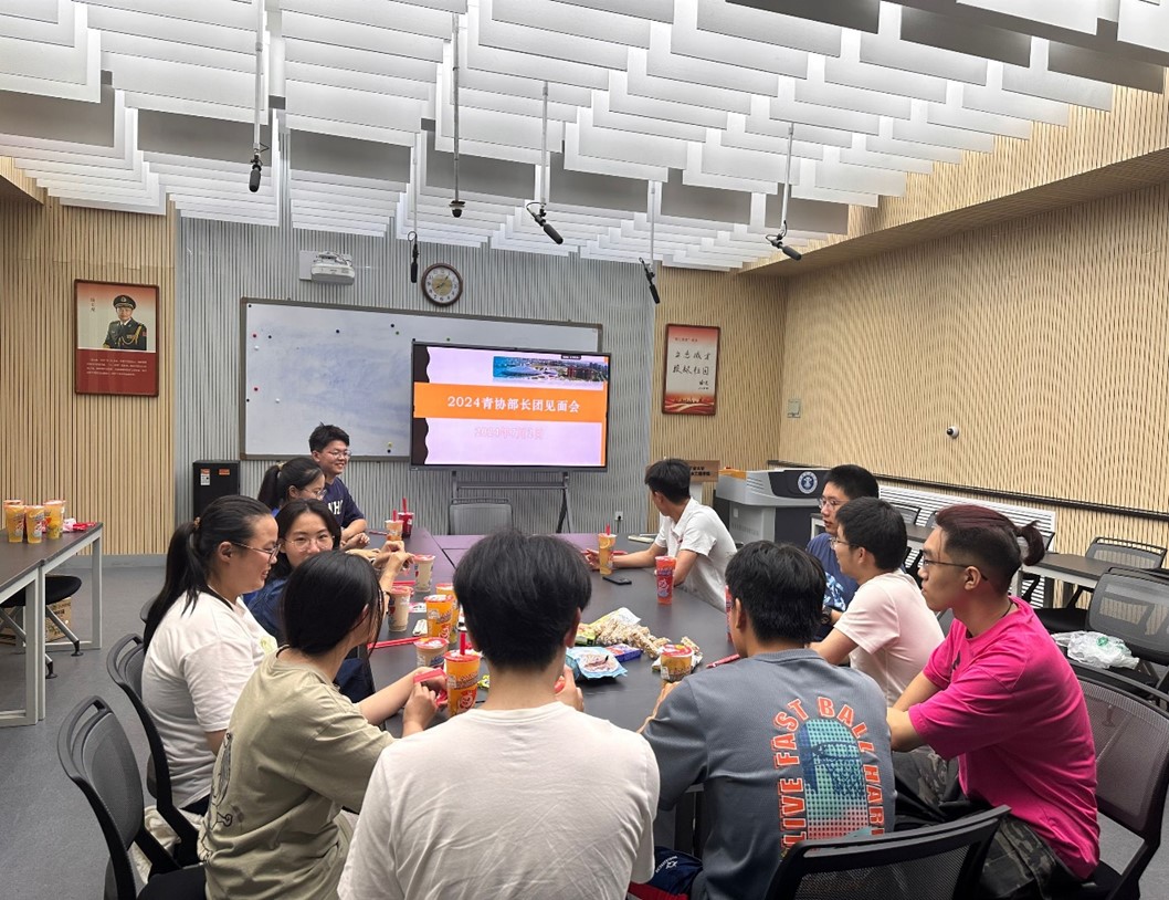 2024-2025学年青协部长团见面会在学院楼B201举行。青协主席高健超、副主席姜宛廷、鲁涛和2024-2025学年青协新任部长和副部长参加活动。