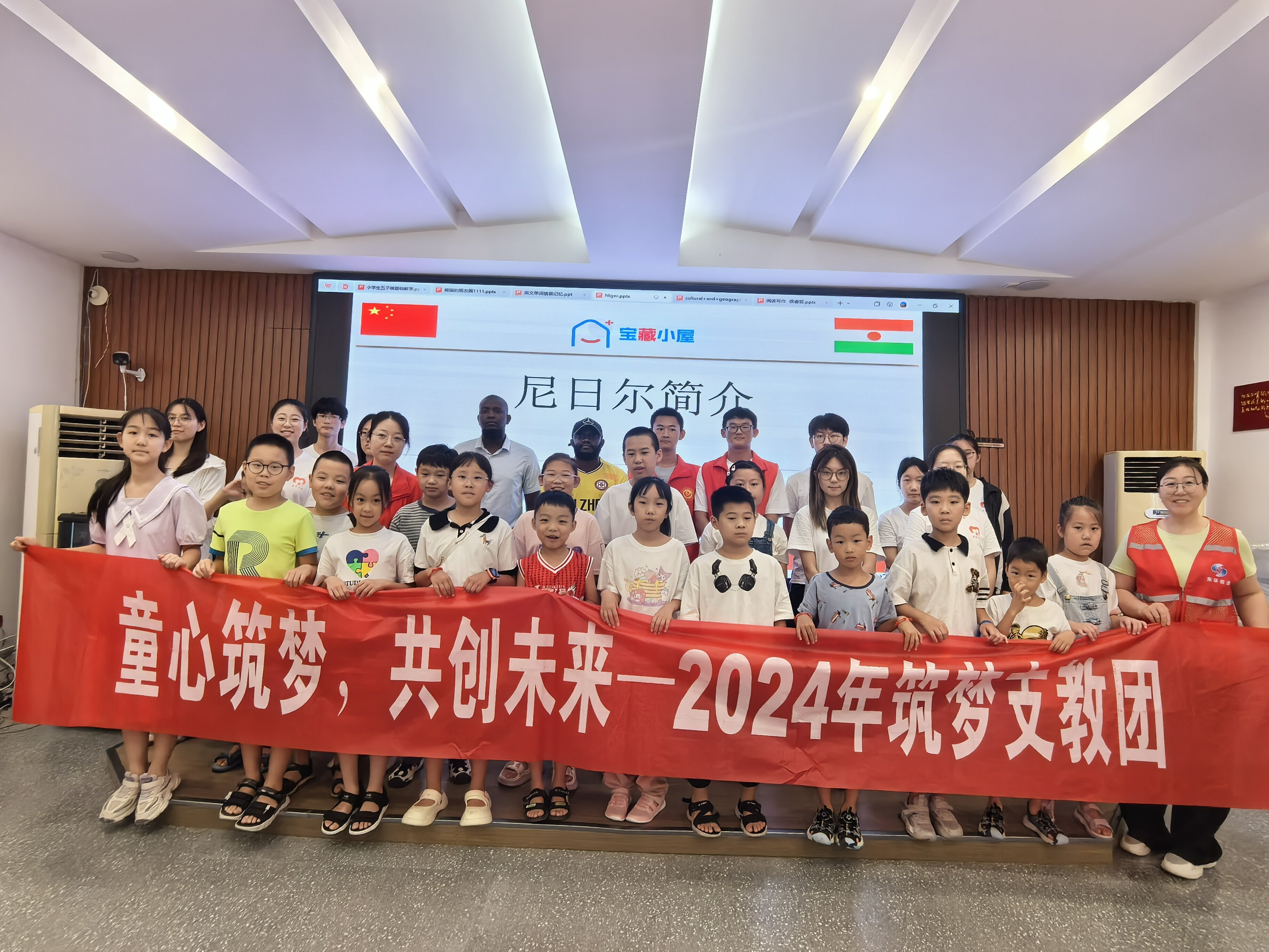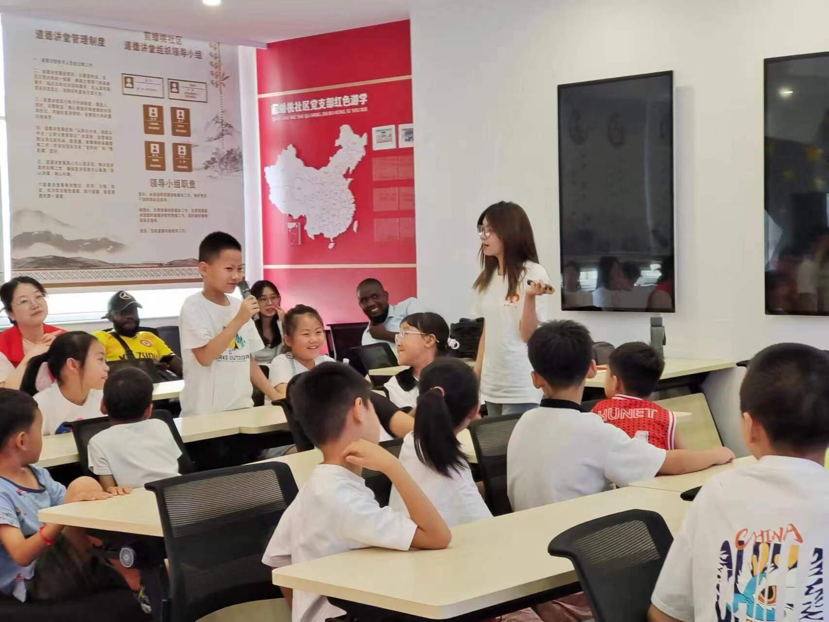 “探索鼓楼特色爱心暑托班服务新模式”项目火热进行。项目以中外合作为主要形式,以“童心筑梦,共创未来”筑梦爱心公益教育实践团为载体。队伍中还有两位外国同学,分别是来自尼日尔的曼多,来自赞比亚的奥古丝。实践团共同赴往前蟠桃社区,给社区孩子们带来别开生面的暑期课堂。