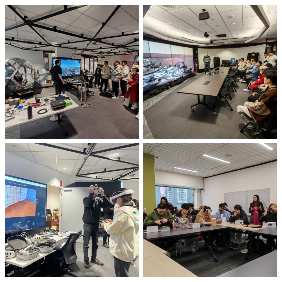 3D体验环节,在RMIT的虚拟仿生实验室, Ben Koder老师讲解了模拟仿真直升机、混合现实(MR)技术、仿人机器人Rossie等机器、仪器的工作原理,并组织学生有序进行体验。 Ali、Behzad老师带来VR设备,让学生现场体验RMIT校园的3D工程,用沉浸式、交互的方式激发了学生的专业学习兴趣。