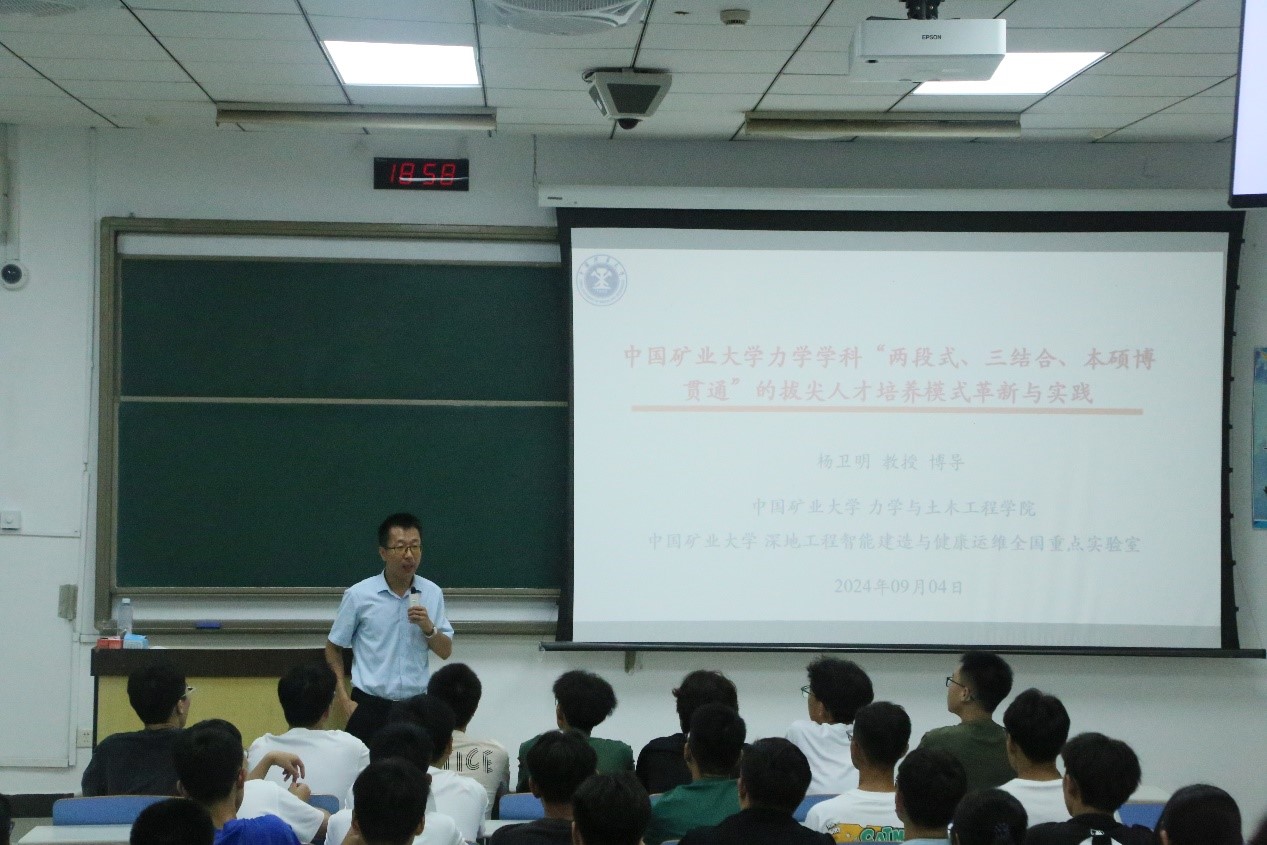 在公教区博2楼B101举行了针对工程力学专业2024级本科新生的专业认知教育活动。此次活动由力土学院力学系主任杨卫明主持,旨在帮助新生全面了解工程力学专业,为他们今后的学习和发展奠定坚实的基础。