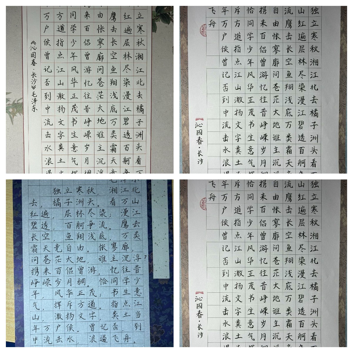 此次书法比赛分为软笔组和硬笔组两个类别,进一步细分为线上初赛和线下复赛两个阶段。线上初赛于10月1日至10月7日进行,参赛选手通过提交电子作品的方式参与。参赛者们在这段时间内,通过精心准备,以书法作品表达对祖国的祝福与热爱,作品内容涵盖了爱国诗词、名句以及自己创作的内容。线上初赛不仅提高了选手们的书法水平,也为同学们提供了一个展现自我、交流学习的平台。