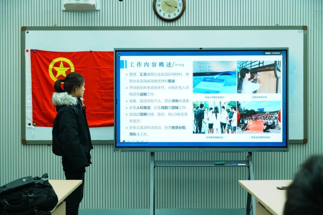答辩结束后,团委学生副书记王宇祺进行点评指导。他肯定了政治部的工作质量,对组织部工作给予指导,帮助实践部部明确未来发展方向,要求综合部加强新闻撰写和宣传工作。同时,团委学生副书记宋蕊束强调成员要加强自身建设,以学习为先,各部门全力协作,推动团委更好发展。
