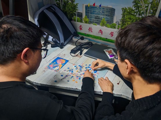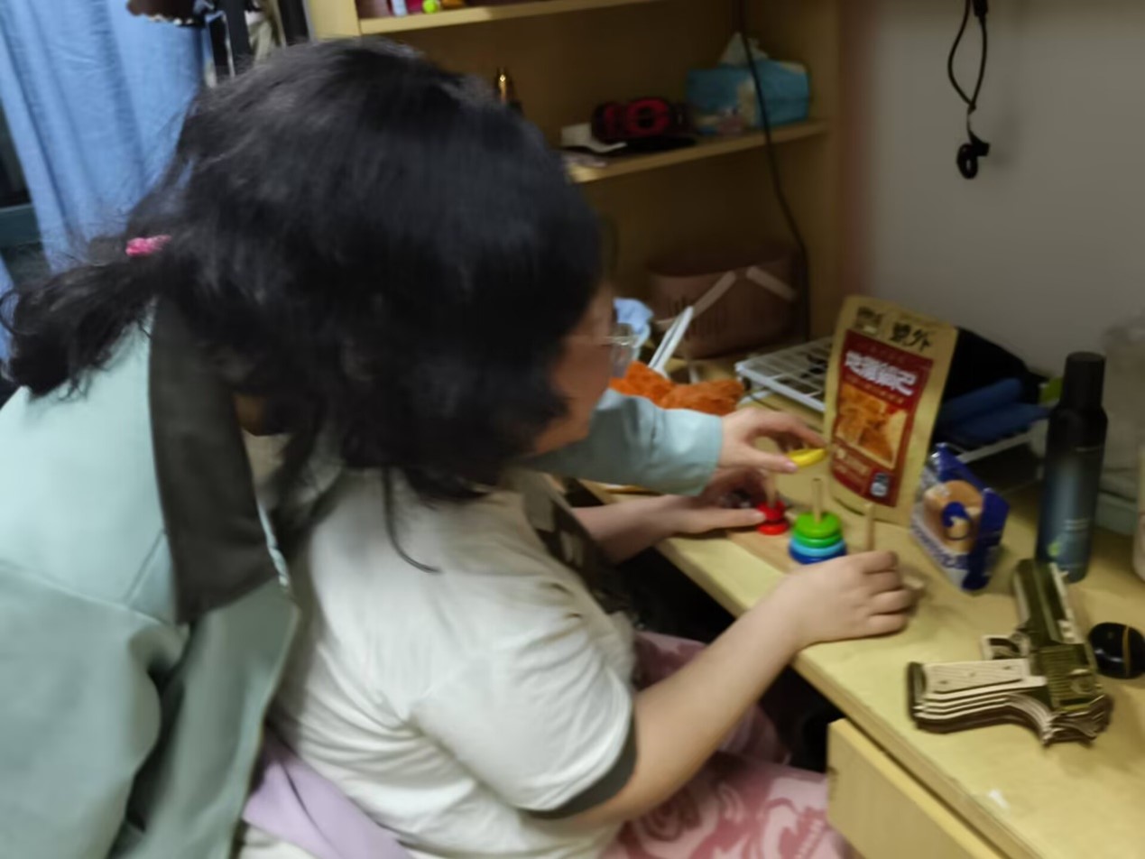 活动伊始,在紧张且有趣的心理知识竞赛过程中同学们积极参与抢答。学习心理健康知识的同时还能获得精美礼品的形式吸引了多数寝室成员参与其中;在其后的合作拼图趣味游戏中同学们依靠团队协作将复杂困难的挑战轻松化解,锻炼了室友间的合作互助能力;锻炼动手协调能力与活跃思维的汉诺塔游戏同样深受欢迎。