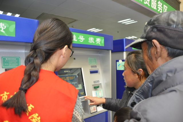 下午1点10分,9名志愿者在北门公交车站牌处集合,并一同乘坐公交车,下午2点整准时来到徐州市第四人民医院。在医院工作人员的指引下,志愿者们进行签到并领取了志愿者服装。带队人姬泽鑫细心地为志愿者讲解自助挂号机的使用方法,并给志愿者做出示范。志愿者熟悉了自助挂号机的使用流程之后,就开始了导医工作。在导医工作过程中,志愿者们耐心地为挂号和缴费的病人或病人家属讲解挂号机的使用方法,并主动帮助他们挂号缴费。当遇到解决不了的问题时,志愿者们第一时间寻求医院工作人员的帮助,及时解答问题。在活动过程中,除了讲解自助挂号机的使用方法,志愿者还帮助了一名病人,帮助他在其背部的伤口处贴上了膏药。同时,志愿者们认真服务的态度和细心的讲解得到了病人及其家属的认可和赞美。下午5点,导医活动顺利结束。