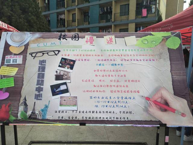 11月15日,由电力学院主办、土木学院、机电学院等协办的“校园慢递”活动于一食堂、二食堂广场展开。学院心理自助中心团辅部于16日和17日在二食堂协助进行宣传并收发信纸、信封。