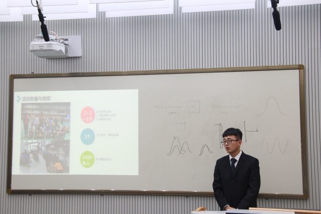 晚上7点,在评委老师对竞选答辩会进行简单介绍并提出相关要求后,答辩会正式开始。首先,由候选人结合PPT进行自我陈述。候选人陈述的内容主要包括自己在部门里的工作情况和工作能力、自己的优缺点以及担任自己正在竞选的职务后对工作的展望和汇划。会上,候选人举止规范有礼,言语严谨清晰,慷慨陈词,意气昂扬,充分表达了自己能够优秀地完成学生工作的意愿。随后,评委们对候选人进行提问,重点考察候选人对他们所竞选职务的认知情况、候选人的工作能力以及他们若担任了此职务之后会进行怎样的工作安排或者怎样完善学生工作。晚上10点左右,本次答辩会结束。