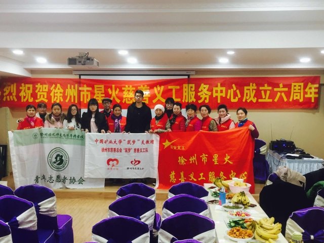 2月25日晚,志愿者们载歌载舞举办晚会,“筑梦”公益陪伴一路走来的伙伴——徐州星火慈善义工服务队,共同祝贺团队的生日,活动准备中,大家各尽其责,贴横幅,换服装,准备音乐和背景图片等等,一切前期准备有条不紊的进行着,“筑梦”公益作为嘉宾,参与了为志愿服务之星颁奖环节,并参与合照。大家本着助人为乐的宗旨,以帮助他人为乐,大家利用自己的特长技能为社会服务,自己出钱出力,安老扶幼,助残济困,为社会奉献出微薄的一份力量。大家齐聚在此,一同庆祝星火慈善义工服务中心六周年纪念日。
