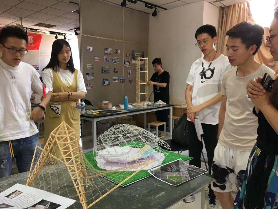 下午两点半,模型经过不断的打磨呈现出最终的形态,参赛同学就模型的创作理念做了具体的补充,向评审老师传达设计理念与想法,老师不改严厉,就模型已经改进的地方作出了评价以及更高层次的建议指正,力求精益求精。在交流中,老师结合国际国家形势、国家发展趋势向同学们传递了建筑的理念,鼓励同学们做出更加优秀的模型。江苏省大学生土木工程结构创新竞赛是由中国土木工程学会教育工作委员会江苏分会主办,每年举行一届,是全省高校土木专业本科生的品牌赛事。本次校内选拔赛正是为其选拔优秀人才,展示我校风采。老师秉着严谨的态度言传身教,激励同学们向更高层次发展。