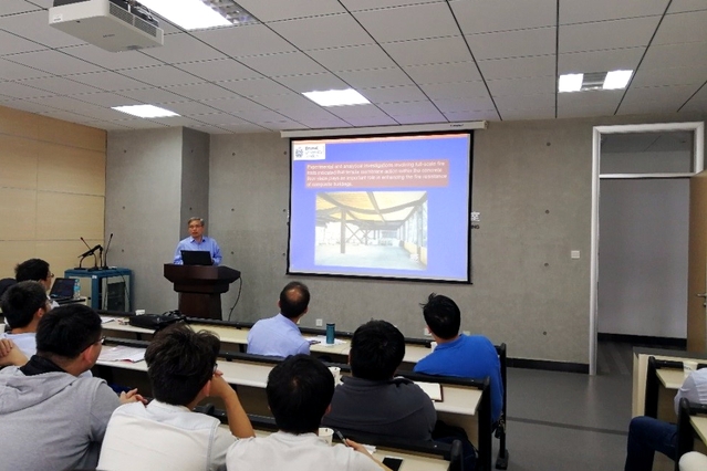 2018年5月9日-5月17日,英国布鲁内尔大学黄昭辉教授来我校开展学术交流。访问期间,黄昭辉教授在深部岩土力学与地下工程国家重点实验室305报告厅举办了两次学术报告,报告题目分别为“Numerical modelling of reinforced concrete structures in fire”和“Behaviour of composite buildings under fire conditions”。两次报告主要介绍了混凝土梁、板、节点和柱等单元模型、混凝土爆裂模型和材料高温本构模型等以及上述模型在结构中各构件火灾行为分析的应用情况。在座师生与黄教授就构件火灾行为数值模拟问题进行深入热烈的交流与讨论。报告会由袁广林教授主持。
