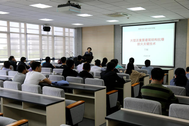 丁阳教授作为建筑结构抗爆研究领域的专家,主持和承担了国家科技支撑计划课题“大型及重要建筑抗爆防火关键技术”(2012BAJ07B05)等数十项国家级和省部级科研项目,以及一批国家重点工程委托科研项目。丁阳教授向在座的教师和学生简要阐述了结构抗爆问题在地铁等大型及重要建筑中的体现以及结构抗爆研究的重要意义,并详细介绍了团队对建筑结构抗爆课题的研究路线和研究成果。丁阳教授在报告中介绍,团队首先针对结构在爆炸和火灾联合作用下的荷载类型开展研究,得出各类工况下各构件的荷载类型及荷载理论简化模型。在此基础上,研究了爆炸和火灾联合作用下材料本构关系,得到建筑材料在冲击荷载下的各项力学指标,并根据新型材料本构研究了重要构件的损伤程度,对构件进行损伤评估,确定了构件的损伤等级。研究采用整体结构分析法和子结构分析法分析了结构的抗连续倒塌性能,得到建筑结构在爆炸和火灾作用下的抗连续倒塌设计方法和加固方案。最后,丁阳教授与同国产无码