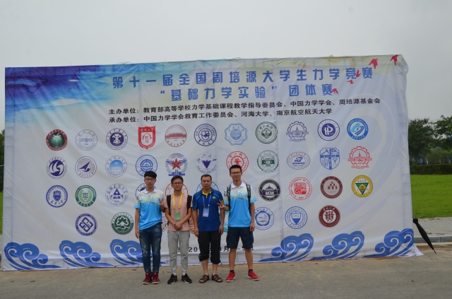 组建了由学院钟卫平和杨静为指导教师,学院徐英俊、丘天一和渐徵墨3位同学组成的参赛队伍。在团体赛的各个环节中,三位同学凭借平时的训练积累及扎实的力学分析能力,在实验技能及实验方案设计方面表现突出,最终取得总分第3名的好成绩,并荣获全国一等奖。同期举行的第十届江苏省大学生力学竞赛基础力学实验赛中,我校三位同学也发挥出色,荣获江苏省大学生力学竞赛团体特等奖,徐英俊同学获得特等奖,丘天一同学和渐徵墨同学均获得一等奖。