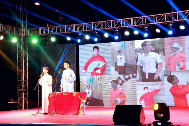 晚上7点半,伴随着精彩的乐队表演,晚会在温馨欢快的气氛中拉开了帷幕。首先,主持人致开场辞并向在场的同学们介绍了出席晚会的领导和老师。接着,学院党委副书记张庆春老师上台致辞,他表达了对顺利完成学业,即将奔赴祖国各地毕业生的美好祝愿。据悉,本次晚会共分为“相逢是首歌”、“在迷雾中前行”、“与君同舟渡”和“此去几时还”四个环节,包含舞蹈、相声、话剧、魔术、器乐演奏等多种表演方式。其中,相声《我的大学生活》诙谐幽默地演绎了同学们生活中的情景;歌曲《凉凉》为观众再现了夜华和白浅的爱情故事;魔术《魔法奇迹》将晚会现场推入高潮;话剧《毕业了,对不起》流露出浓浓的不舍之情,弥漫着毕业季离别的伤感。最后,晚会在2013级辅导员老师骆奕、赵石强和沙猛猛合唱的《一生有你》的歌曲中落下帷幕。
