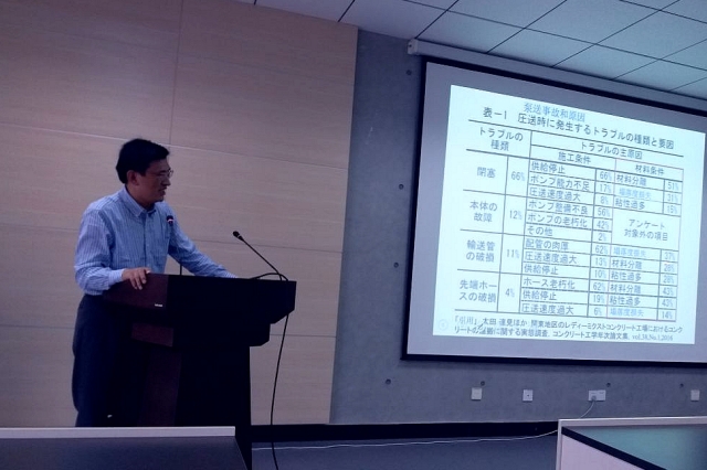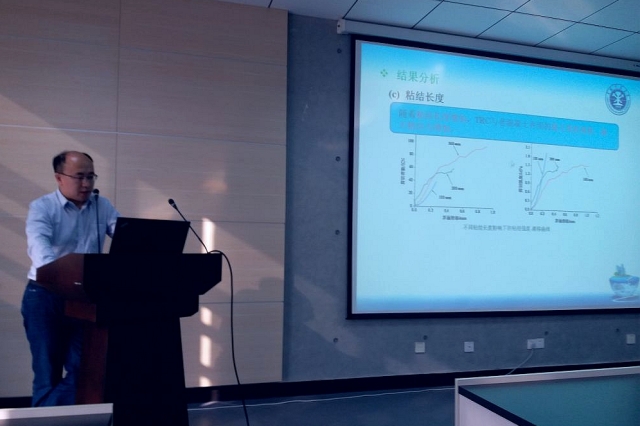 尹世平教授介绍了自己在国外的学习情况和科罗拉多大学博尔德分校在工科研究生培养方面的情况,并结合访学的研究内容作了TRC新型材料及其加固混凝土构件性能研究进展的学术报告。