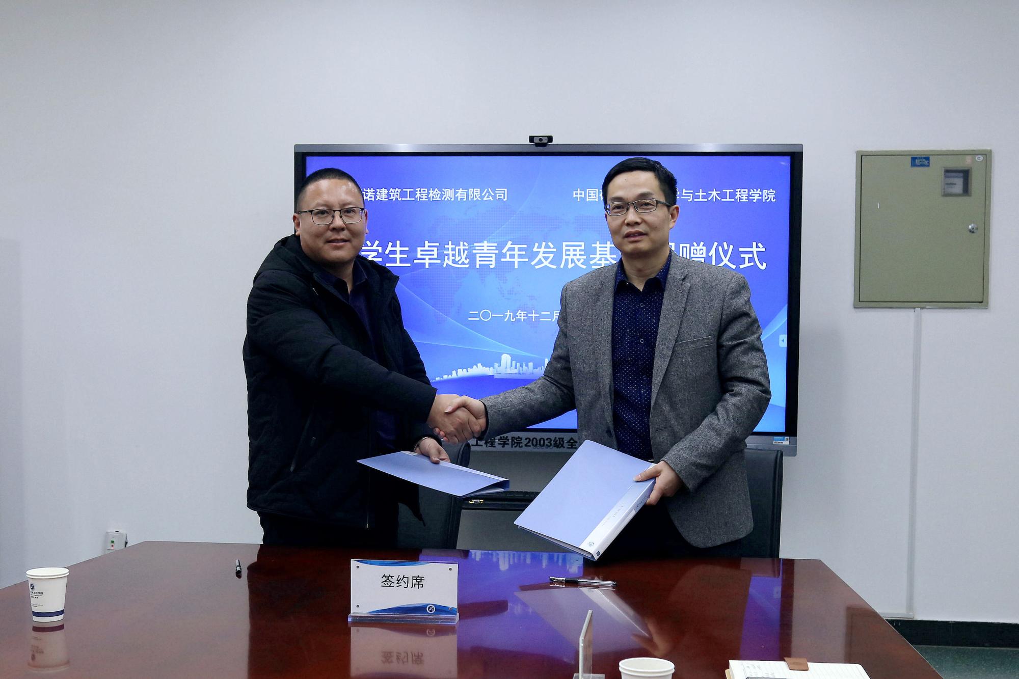 张磊堂总经理对学院在科学研究、人才培养等方面取得的成绩表示由衷地钦佩。他简要介绍了公司目前的业务开展情况,分享了个人和公司的发展历程。他表示,自己在创业和公司运营过程中受到了土木学院校友的鼎力支持和帮助,也非常高兴能够为学院发展和人才培养贡献一份力量。张磊堂总经理表示本次捐赠迈开了徐州恒诺建筑工程检测有限公司与土木学院合作交流的第一步,希望今后能够与学院在各方面保持密切联系,进一步加强合作。