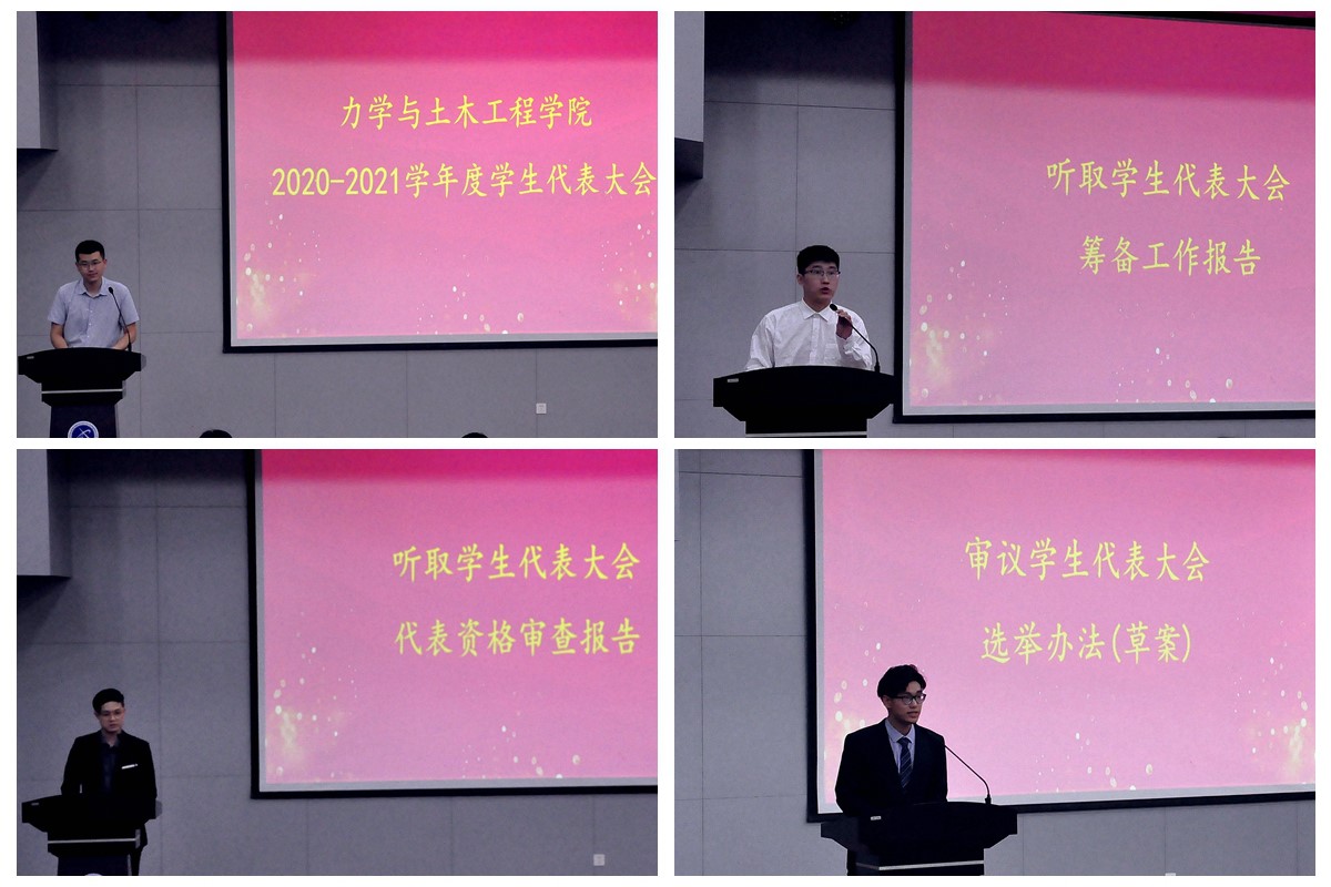 学院团委书记游洋向大会作学院2019-2020学年团委工作报告。他总结了学院团委过去一年的工作成果,梳理了有待进一步改进和提升的问题,简述了新学年的工作目标任务。他还勉励广大青年不忘初心、牢记使命,积极投身学院建设,为把学院建设成为特色鲜明,拥有国内一流、国际有影响力的土木工程学科和力学学科的高水平研究型学院贡献青年力量。