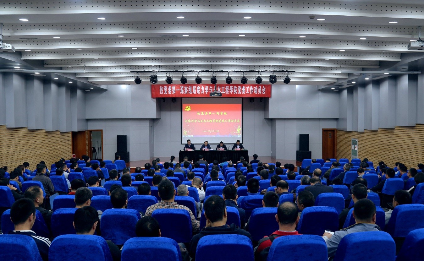 党委工作动员会在土木学院A108学术报告厅召开。校党委常委、副校长周国庆,校第一巡察组组长夏柏年,巡察组成员出席了会议。学院全体教职工、学生代表参加了动员大会。院党委副书记李智主持会议。