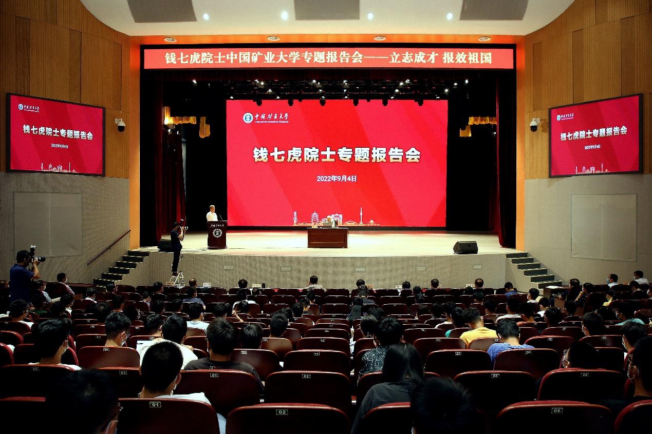 报告会上,钱七虎院士围绕“为什么要立志”“立什么志”“为什么获得伟大成就,必须具有远大理想和志向”“如何才能树立远大的理想和志向”“如何成才”五个主要问题展开讲述。首先,他结合伟人成长经历,特别是以自己的奋斗经验现身说法,系统论述了立志与成长的辩证关系,指出了理想信念和道德品格对于成才的重要作用,凸显了思想政治教育对于人才培养的重要性,引经据典、深入浅出,为在场师生讲授了一堂精彩生动的报告。然后,在互动环节,钱七虎院士就我校师生提出的如何解决科研工作中遇到的难题、职业生涯的规划选择等问题进行解答。他勉励师生要脚踏实地、勤奋学习、善于工作,以伟人、先烈、英雄为榜样,培养高尚情操、道德素养,要秉持初心、不懈奋斗,为实现中华民族伟大复兴贡献力量。他说:“远大的志向成就伟大的事业,远大的志向、远大的理想就是把个人的志向和祖国、民族、人民的命运、需要相结合!”