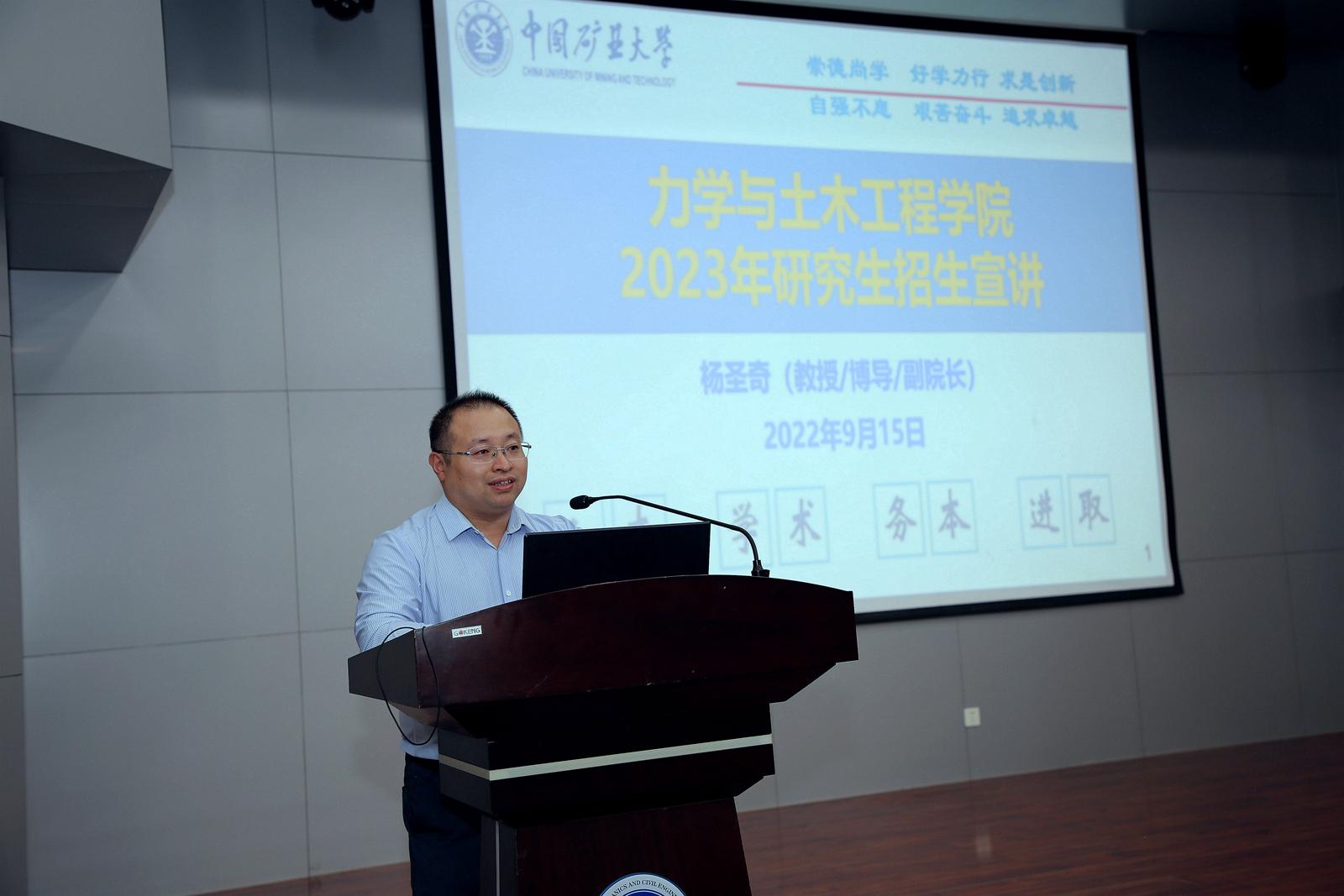 为进一步做好2023年硕士研究生招生工作,同时帮助学生们更好地了解学院情况,学科特色,师资队伍、科研条件等,学院于9月15日下午,在学院A108报告厅举办2023年研究生招生宣讲会,学院副院长杨圣奇教授、学院2019级辅导员和部分大四本科生参加会议,宣讲会由杨圣奇副院长主讲。