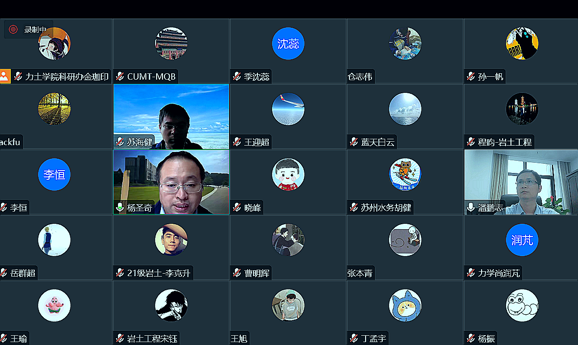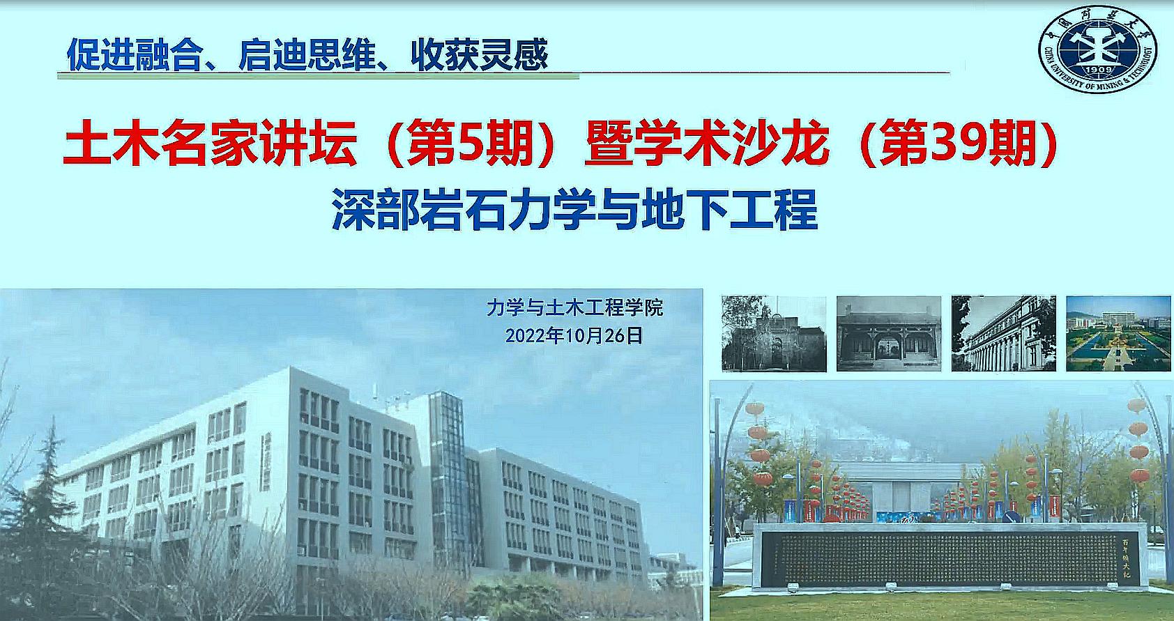 2022年10月26日下午,学院线上组织召开土木名家讲坛(2022年第5期)暨学术沙龙(第39期),共计70余名师生参会,共同探讨深部岩石力学与地下工程的前沿科学问题,土木名家讲坛由副院长杨圣奇教授主持,学术沙龙由苏海健副教授主持。