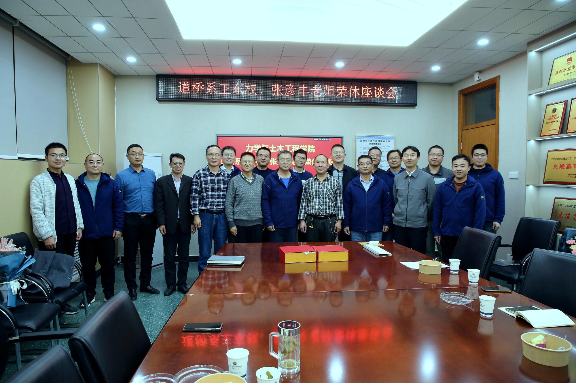 11月25日下午,道桥系在学院A220会议室举办了王东权、张彦丰两位老师荣休座谈会,院党委书记马占国、副书记李智以及道桥系全体教师参加了会议,会议由系支部书记柳志军主持。