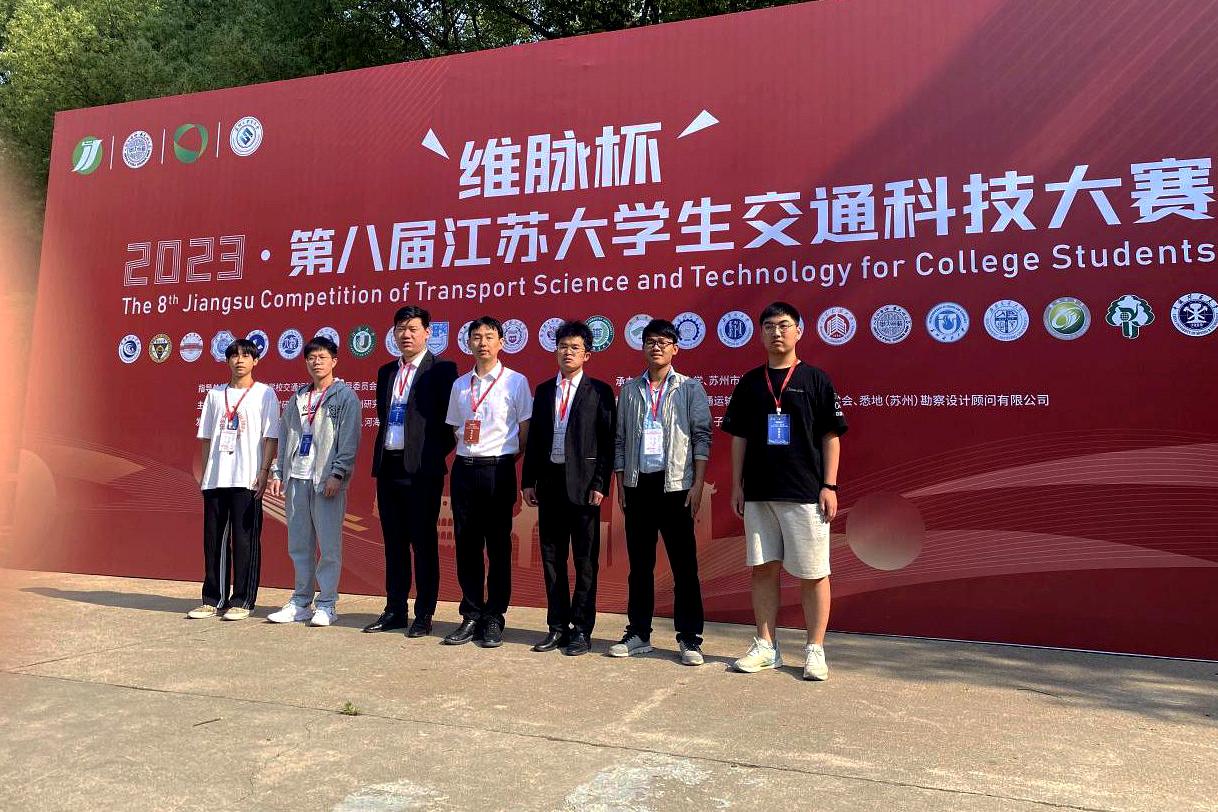 2023年5月13日,第八届江苏大学生交通科技大赛在苏州大学天赐庄校区举行。学院由柳志军、王其昂、刘书奎、王高新、王亮亮等老师指导,2020级本科生李自铭、梁仁杰、王文博和研究生陈靖、刘泉、陈进等同学组成的参赛队伍与来自全国各地高校的团队同台竞技,最终荣获一等奖一项和三等奖两项的好成绩。