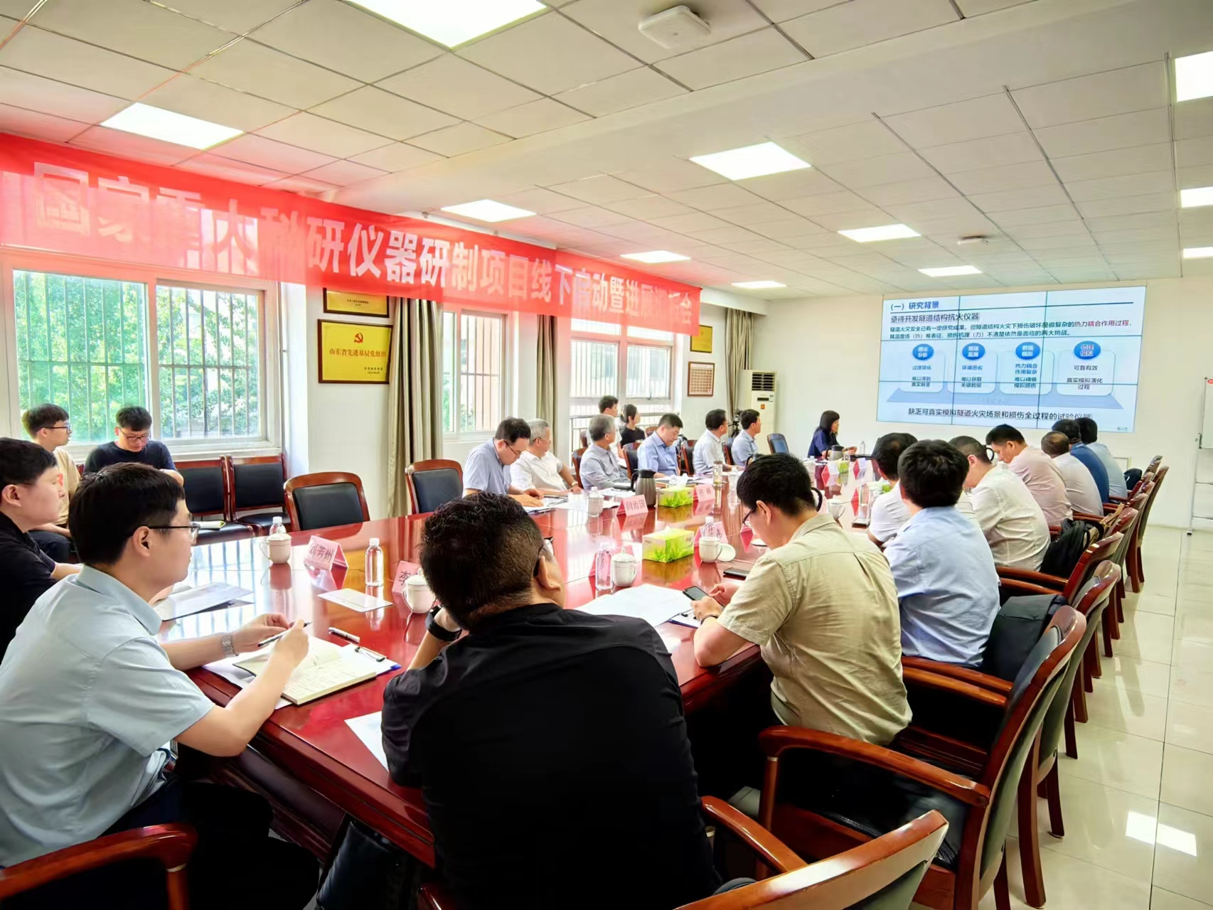 副校长叶继红教授详细介绍了该项目的科学目标、研制内容与方案、关键科学与技术问题、研究进展、研究计划和项目预算等。李术才院士肯定了项目的研究意义和重要性,并提出了项目在软岩大变形隧道防火方面的优势以及未来可能拓展的研究方向。