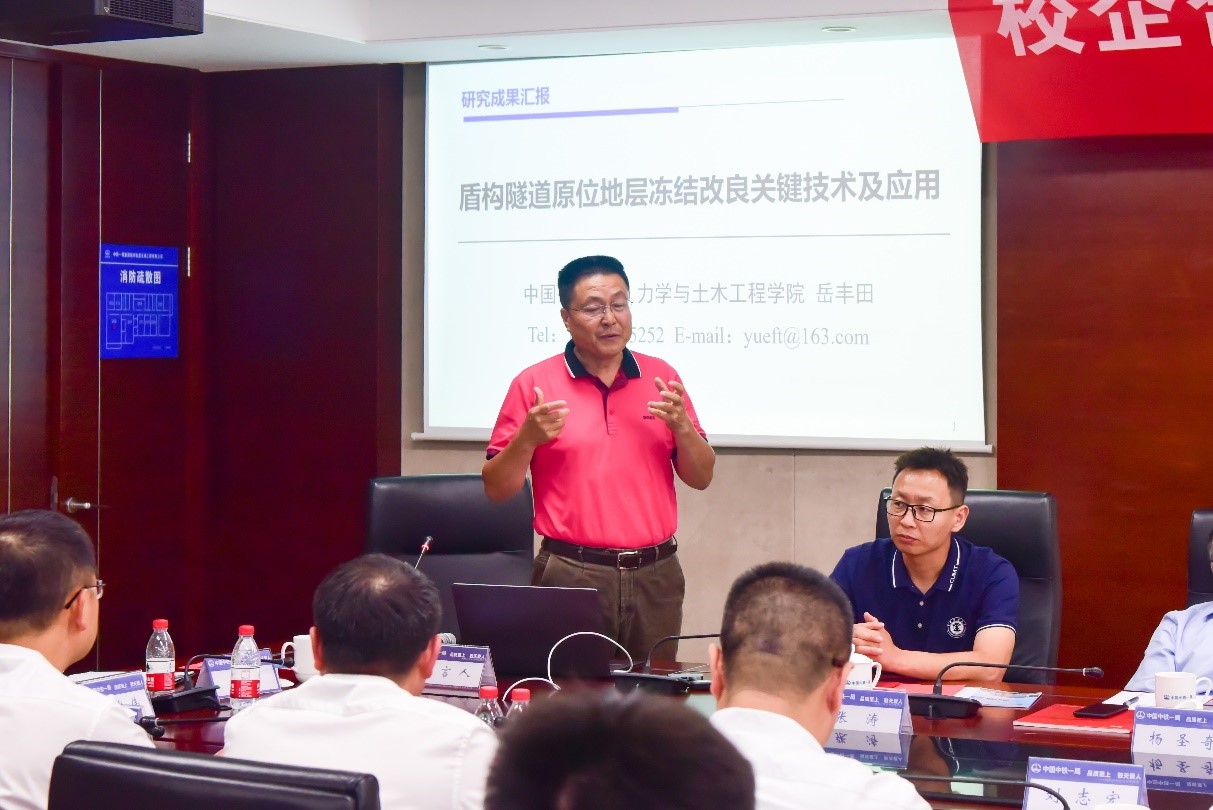 会中,李树忱、袁大军和岳丰田分别做了“土压平衡盾构渣土改良关键技术”、“盾构直接切削大直径钢筋混凝土群桩关键技术”、“盾构隧道原位地层冻结改良关键技术”学术与技术交流报告,并针对城市地下工程中的关键技术难题,与参会专家、各项目部技术主管人员开展了技术研讨。