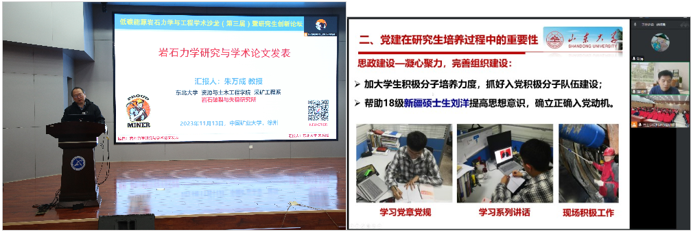 研究生创新发展与培养环节,邀请了朱万成教授和薛翊国教授,分别做了“岩石力学研究与学术论文发表”、“研究生培养的几点思考”2个特邀报告。