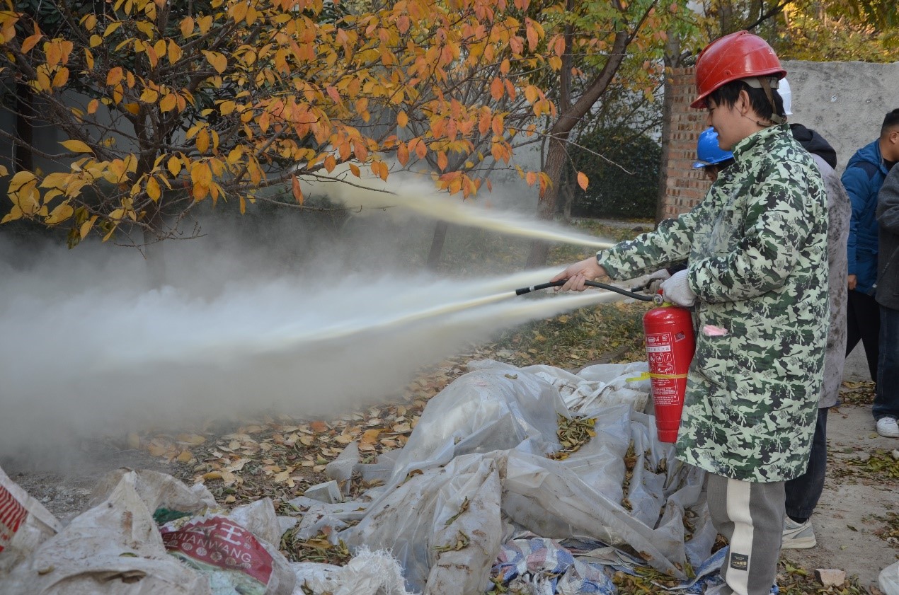 第二项为在大厅东侧模拟开展的消防灭火演练。首先 ,保卫处瞿望科长讲解了灭火器的类型、适用范围、工作原理、操作步骤以及使用过程中需要注意的细节,演示了使用灭火器扑灭油桶火的操作方法和技巧。之后,参加灭火演练活动的师生按照操作要领分组使用灭火器,进行了灭火演练。