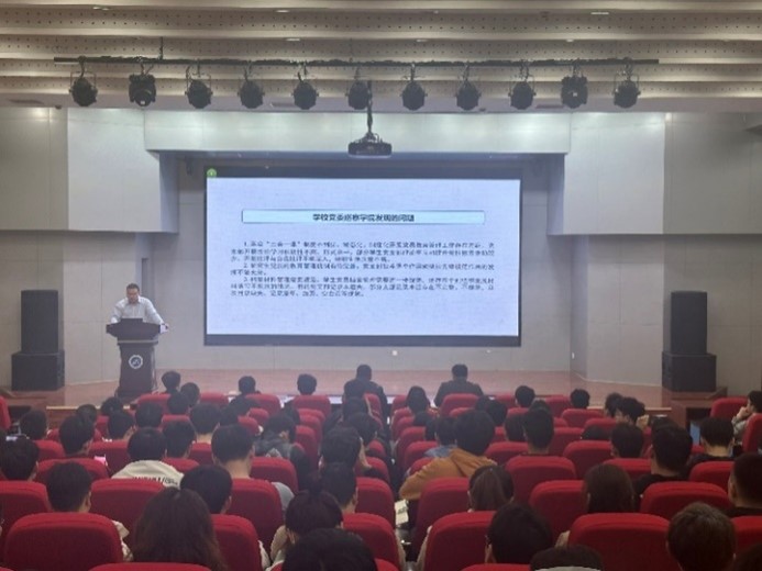 在力土学院楼A108报告厅举办学生党支部党务工作培训会,校党委组织部组织科科长董彬受邀主讲。院党委副书记李智、全体专兼职辅导员、学生党支部委员、党员工作站成员及所有预备党员100余人参加培训。会议由陈忠伟主持。