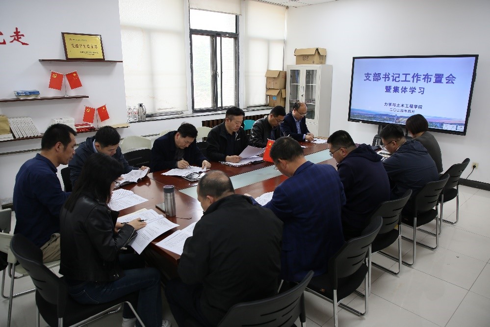 4月10日下午,力土学院在A203会议室召开支部书记例会暨全面从严治党工作会议,传达学校全面从严治党工作会议精神,布置学院近期工作、开展四月份集体学习。院党委副书记李智,教职工党支部书记参加会议。会议由党委书记马占国主持。