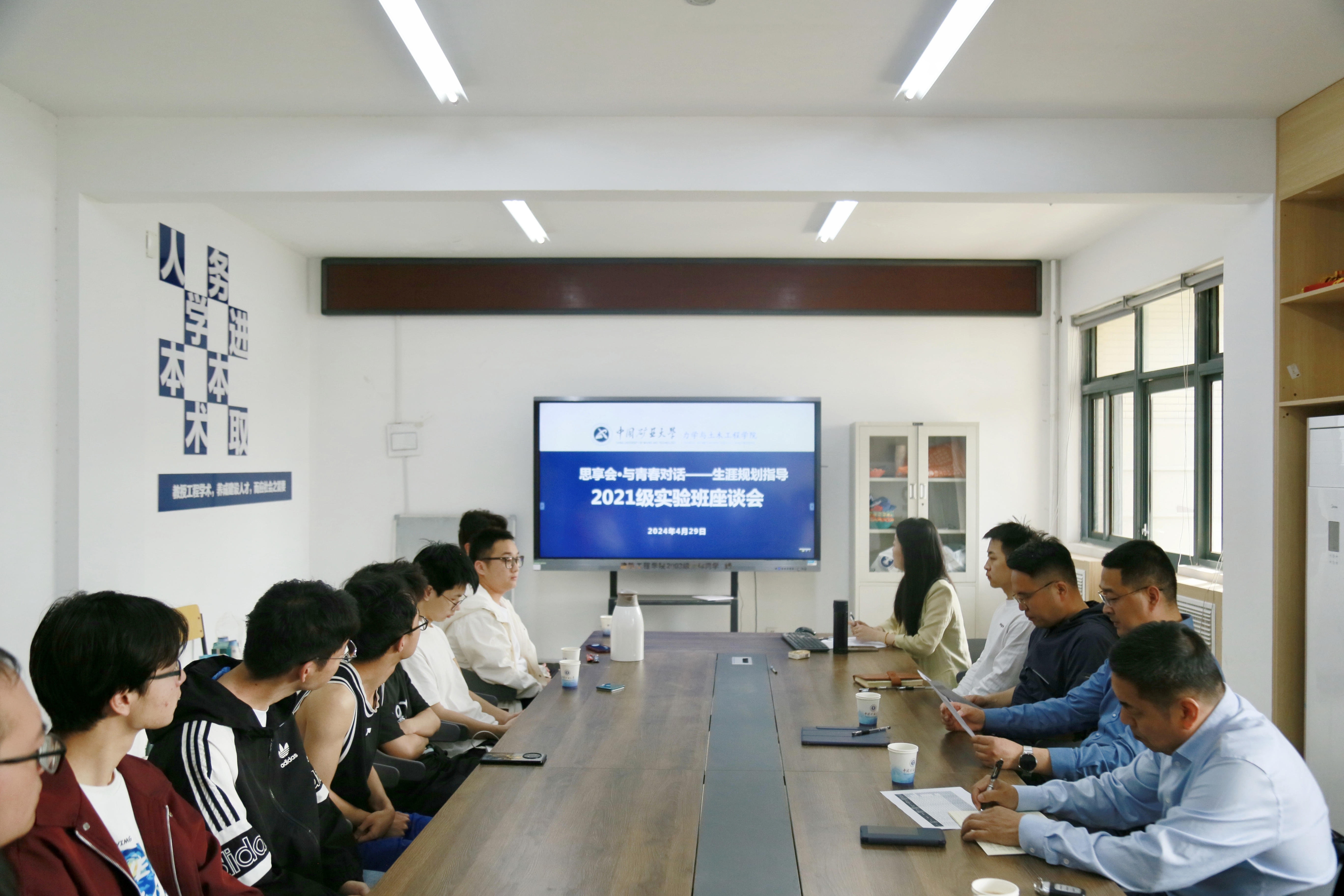 座谈会上,张琳介绍实验班目前基本情况,梳理了前五学期班级同学在各课组的成绩排名等情况。班长李青理介绍实验班建设情况,回顾了自实验班组建以来班级发展情况。张营营结合实验班建设情况以及学生存在的疑问,与同学们交流;周钢围绕土木行业前景、个人能力素质、实验班学习氛围和学习态度等方面与同学们深入交流,对同学们进行生涯规划指导,并勉励同学们要打开格局、开阔眼界、提升判断力和辨别力。最后,李智鼓励学生要注重个人的全面发展,在实验班的平台中,加强与老师和同学的交流,不断提升自我。
