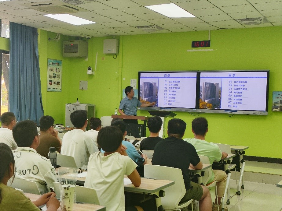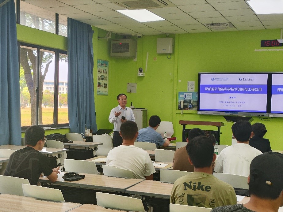 会上,施锡林研究员结合自己在深部盐矿储能方面多年的研究经历,首先系统剖析了盐矿储能的基本原理,介绍了盐穴溶腔的形成机理,并着重强调了盐岩的自我修复能力对提升储能效率的重要意义。随后,他全方位探讨了深部盐矿在多种能源储存应用中的潜力,涵盖天然气、压缩空气、氦气、氢能、石油存储及液流电池等领域。在此基础上,施锡林研究员深入讲解了我国层状盐岩矿床地下能源储备的关键理论与核心技术。最后,施锡林研究员介绍了武汉岩土力学研究所的概况与研究生教育的最新动态与招生情况。施锡林研究员的报告使与会师生深入了解深部盐矿储能这一前沿科技领域,激发了在场学子对岩土力学及其工程应用领域的浓厚兴趣与探索欲望,通过展示盐矿储能技术的广阔应用前景与现存挑战,报告有效衔接了学术研究与实际需求,强调了科技创新对于推动能源结构转型的重要性。