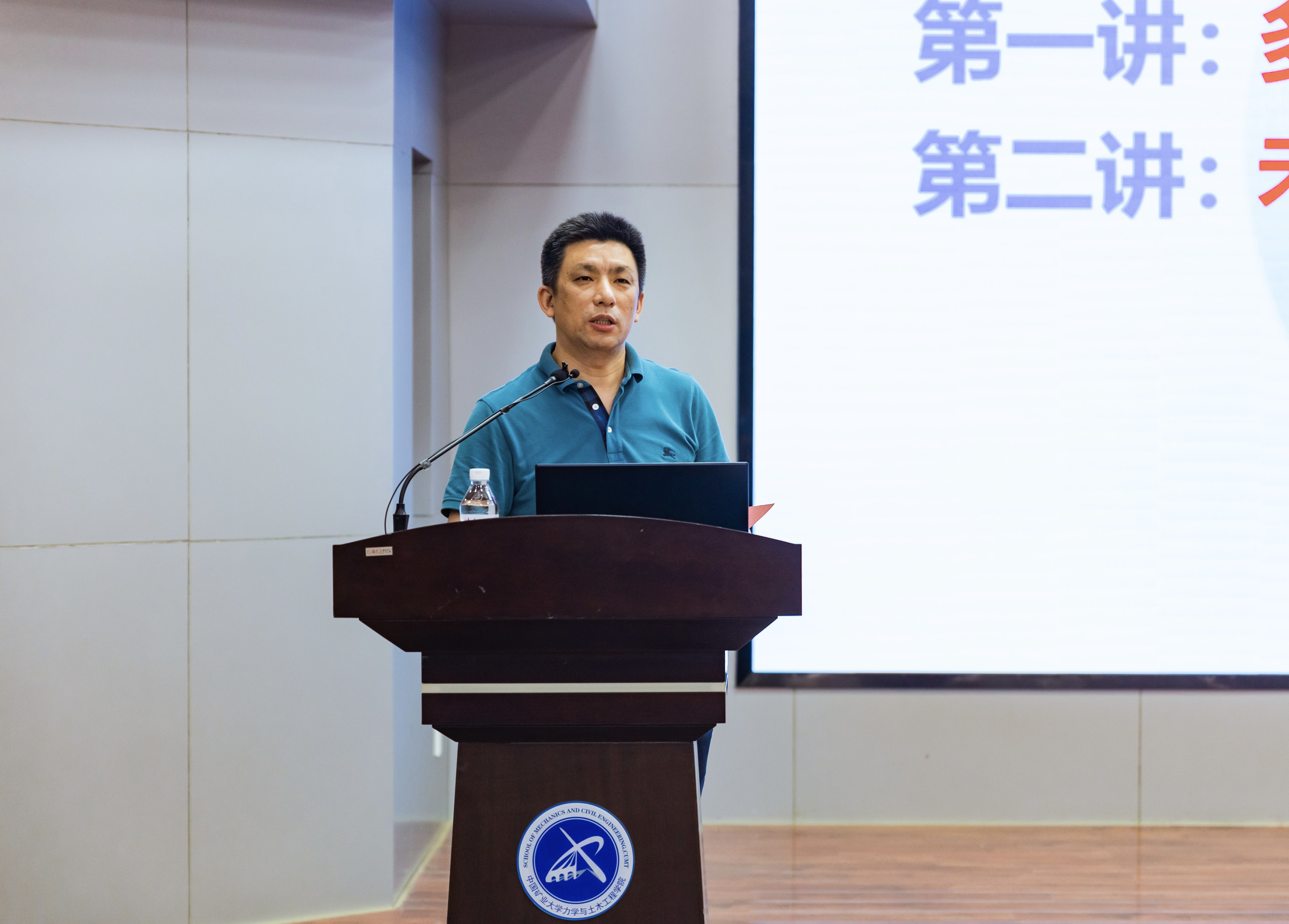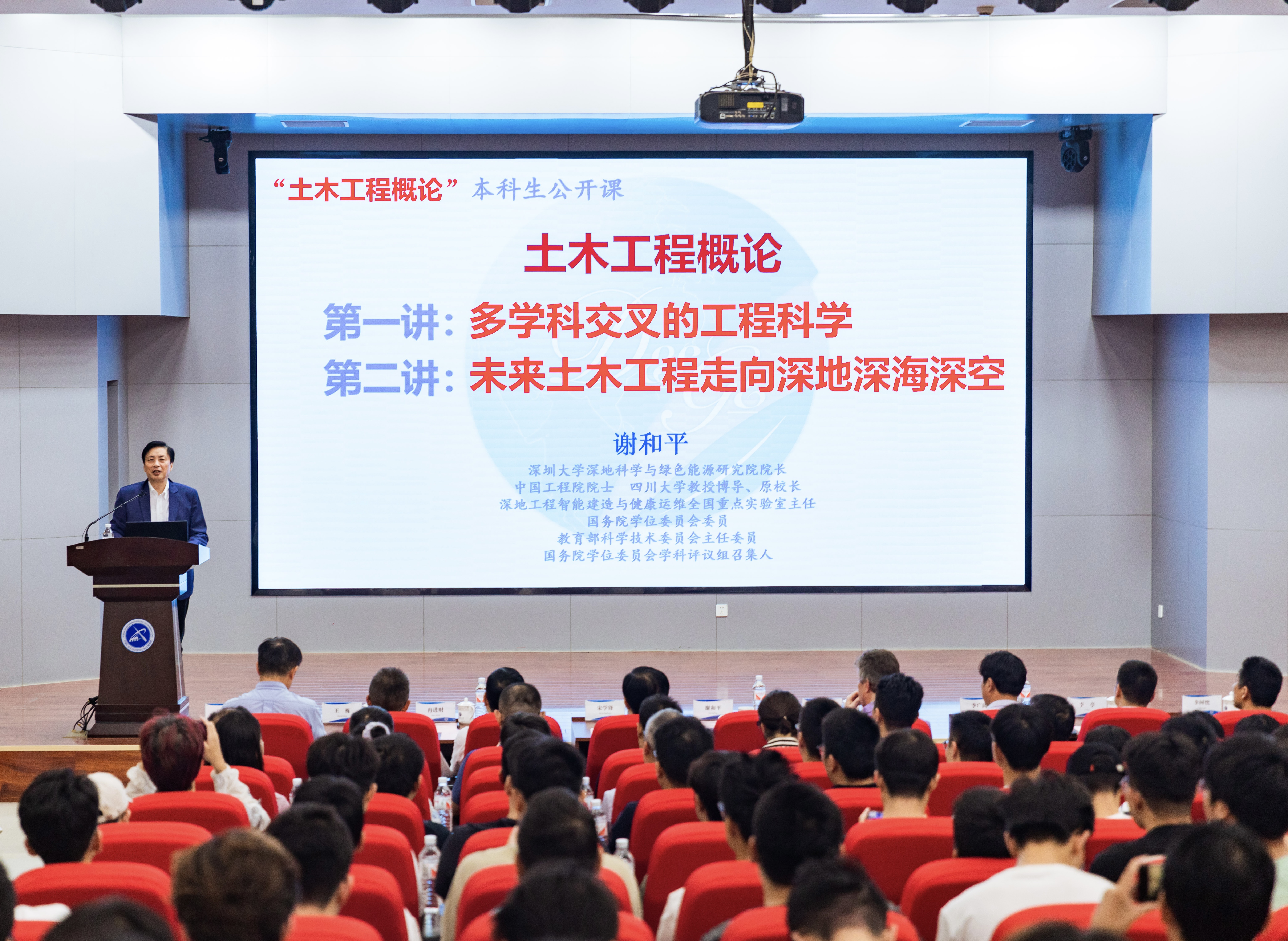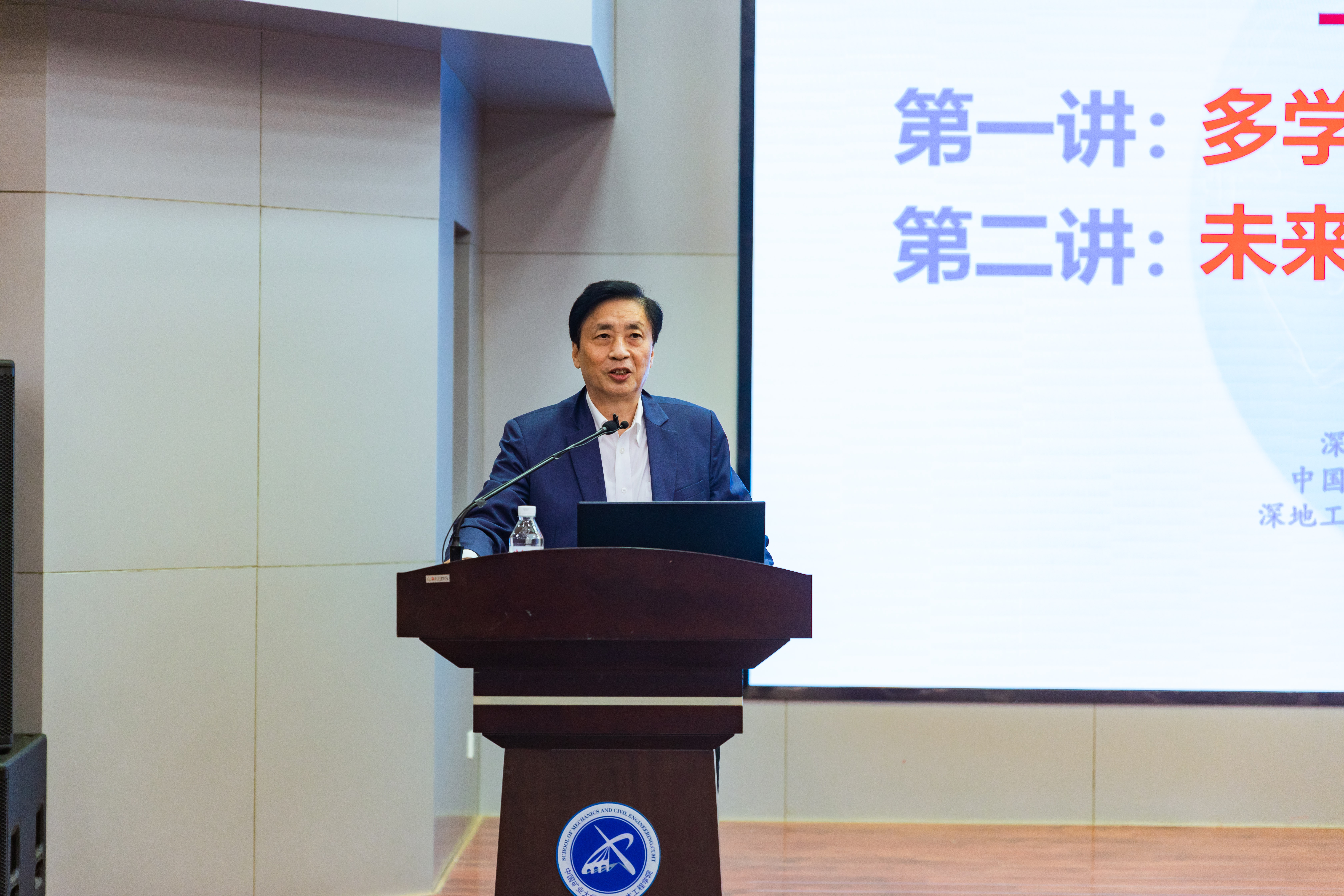 谢和平作《土木工程概论——未来土木工程走向深地深海深空》的主题报告。报告第一讲为“多学科交叉的工程科学”。他指出,土木工程是一门融合了土木、力学、材料、环境、人工智能等多学科交叉的工程科学,要培养能探索科学前沿、创造未来技术、真正具有国际竞争力的土木工程人才,关键是要有多学科的知识面和广阔的学科视野。他通过讲解土木工程的基本定律和典型案例,希望同学们能够通过对知识点的掌握,达到启迪思维、应用知识、创造知识的效果。他通过著名科学家钱伟长的事例,激励同学们要学习传承老一辈科学家精神,聚焦前沿领域,攻关核心技术,破解工程难题。报告第二讲为“未来土木工程走向深地深海深空”。他结合国家“四深”科技战略,向同学们介绍了深地科学与深部保真取芯探矿原理与技术、深海可燃冰保压保温取芯原理与技术、月球物质资源开发利用中的土木工程问题,并讲解了谢和平院士团队在破解相关领域核心技术难题中所进行的前沿探索、原理创新和技术突破。最后,他以习近平总书记在二十大报告中对青年的寄语“当代中国青年生逢其时,施展才干的舞台无比广阔,实现梦想的前景无比光明”,勉励同学们要树立远大志向,在矿大的平台上充分施展才华,努力实现梦想。在互动环节,谢和平院士就国产无码