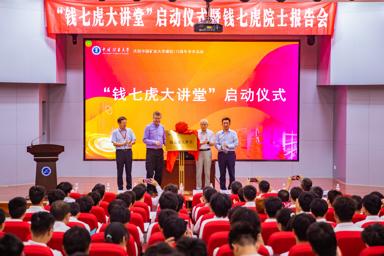 启动仪式上,钱七虎与Derek Elsworth为“钱七虎大讲堂”揭幕