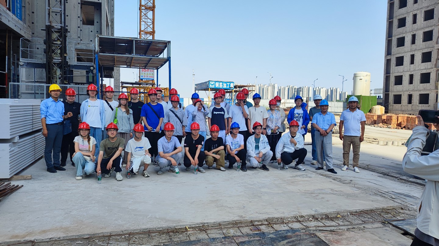 同学们依次参观了包含智能建造主要环节的预制ALC墙板、预制楼梯板和预制叠合楼板的施工区域。本次课外实践教学活动是智能建造课组的《建筑结构综合设计》课程教学的改革尝试,是对该课程课外学时的充分合理利用,是产教融合进行实践教学的重要组成部分,旨在让学生及时在工程现场直观体验所学课程知识的实际应用,夯实其专业基础,深化学生对所学知识的理解,提升自身的实践能力。