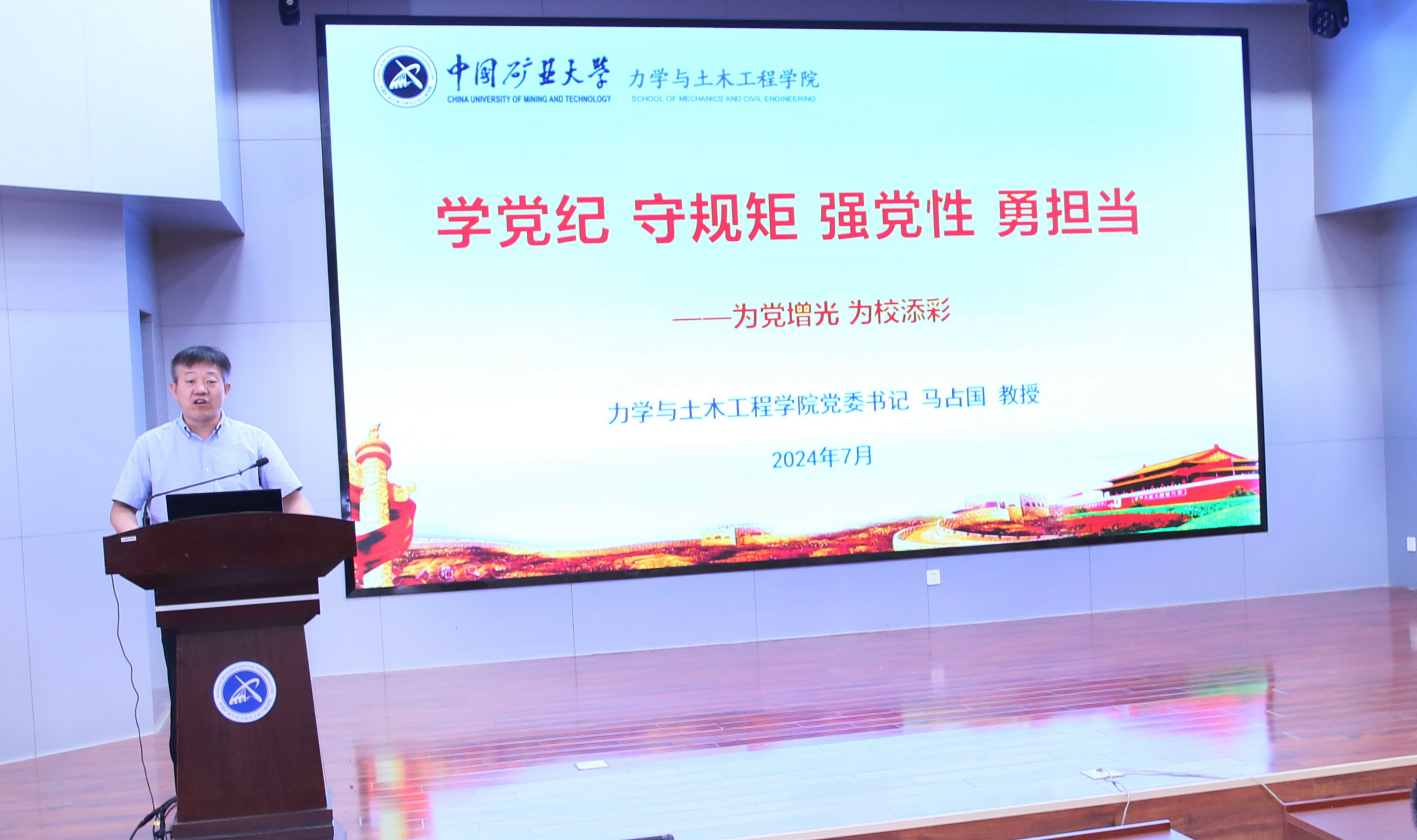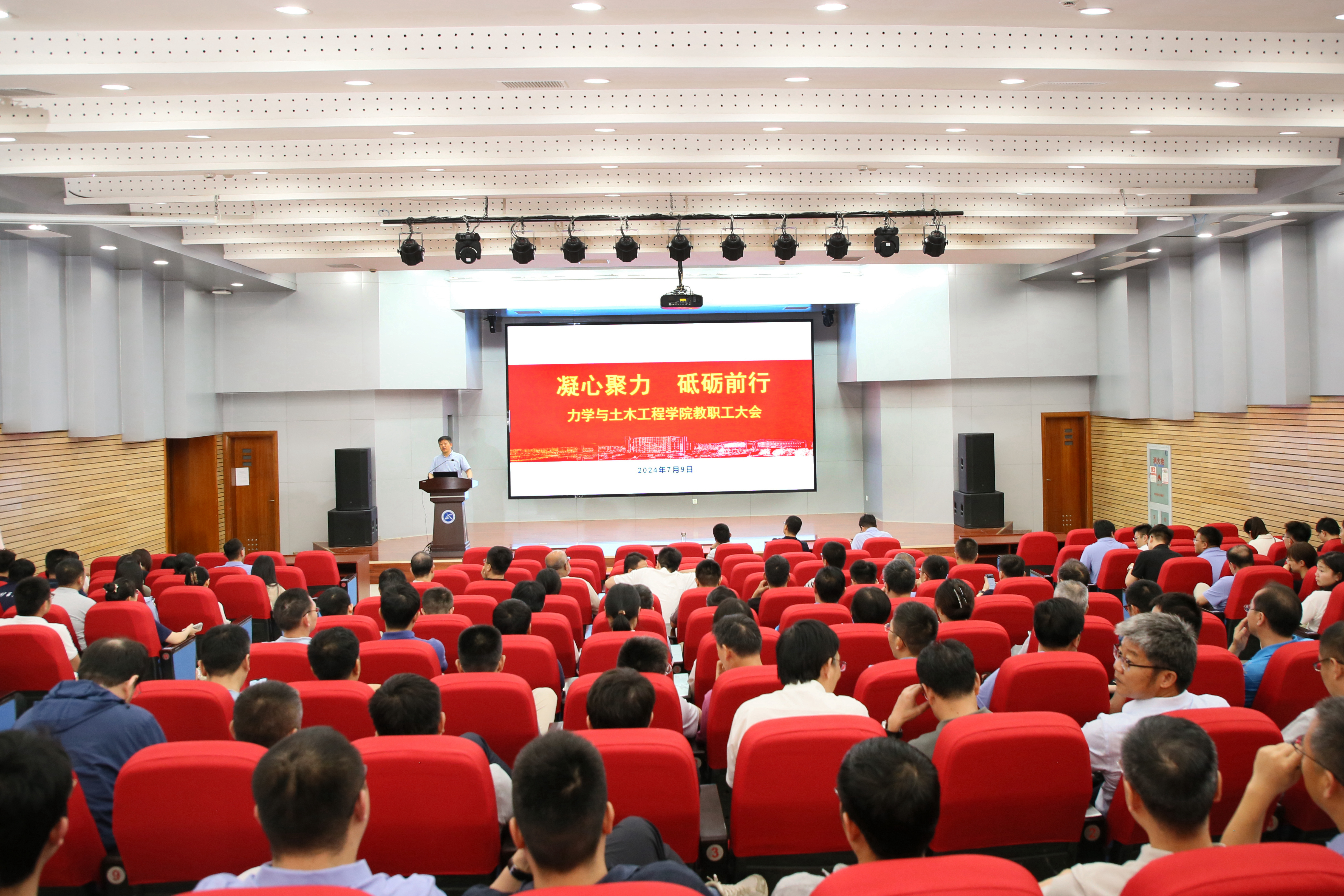 7月9日下午,力土学院在A108报告厅召开全院教职工大会,总结2024年上半年学院工作,开展党纪学习教育。院领导班子成员、全院教职工参加了会议。党委书记马占国主持大会。