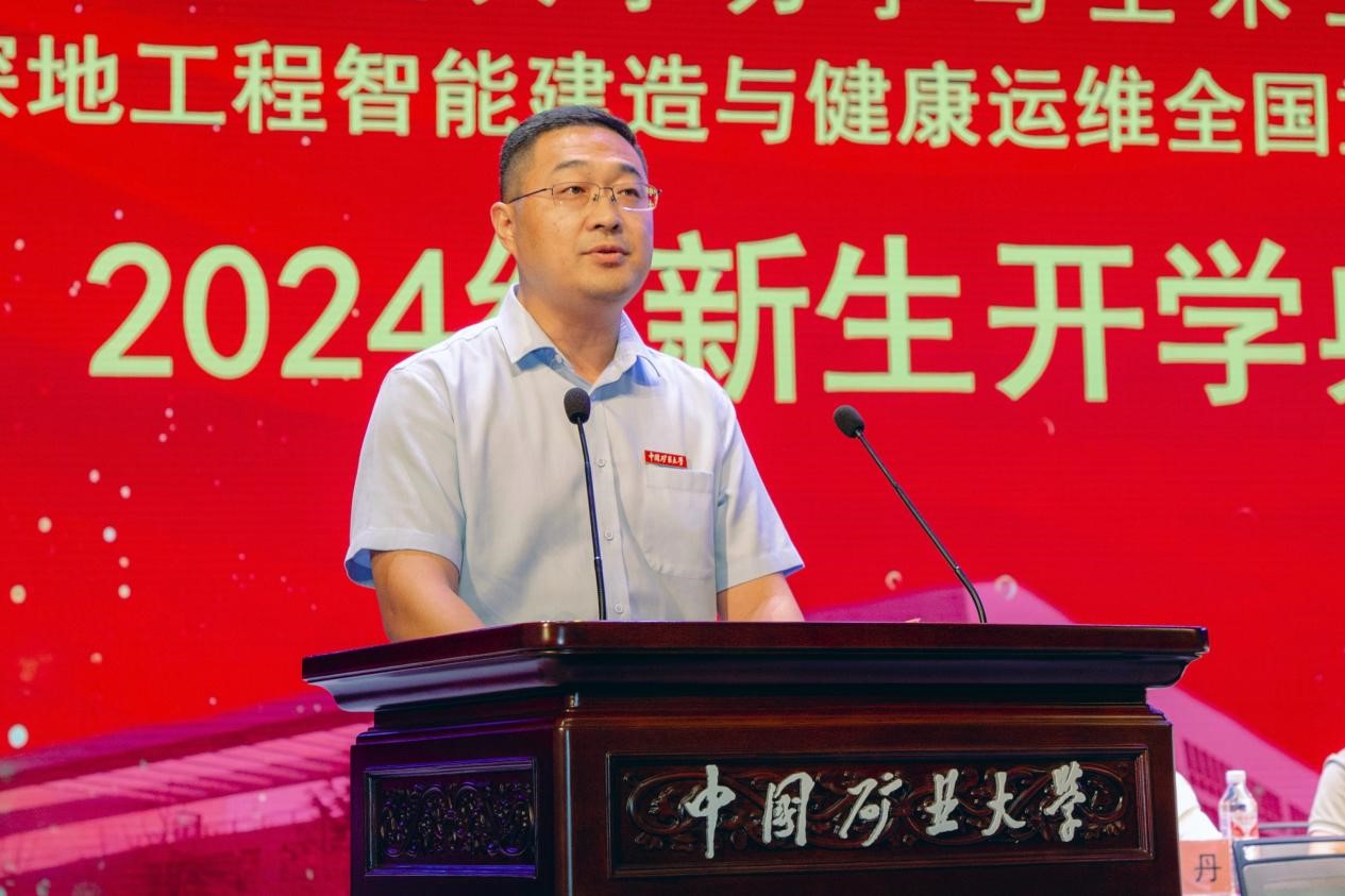 2024级新生李亚澎作为新生代表发言,他表达了圆梦矿大的喜悦,表示将坚定理想信念,矢志艰苦奋斗,用美好的大学时光,谱写属于自己的精彩华章。他提到,作为矿大新成员,同学们将肩负建设祖国重任,秉承“自强不息,艰苦奋斗,追求卓越”的矿大精神,恪守校风校训,努力成为有理想、有担当的“矿大人”。他承诺,全体新生将铭记青年使命,锤炼本领,拓宽专业领域,为科技进步和行业发展贡献青春力量。