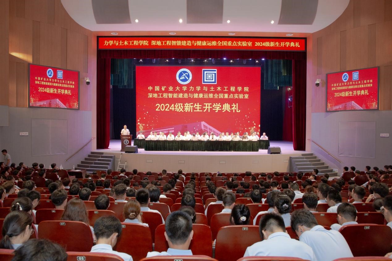 9月5日下午,力土学院和深地国重2024级新生开学典礼在力行楼明德礼堂隆重举行。学院党委书记马占国、院长李树忱,深地国重党委书记李晓昭,江苏省人大代表、江苏省土木工程专业教学名师、我校妇委会主任夏军武,江苏省工程管理专业教学名师王文顺,江苏省优秀力学教师赵慧明,学院党委副书记李智,副院长张营营、王迎超、周劲锋,部分国家高层次青年人才、各系所(中心)负责人,2024级本科生全体班主任老师以及全体专兼职辅导员老师参加了典礼。典礼由李智主持。
