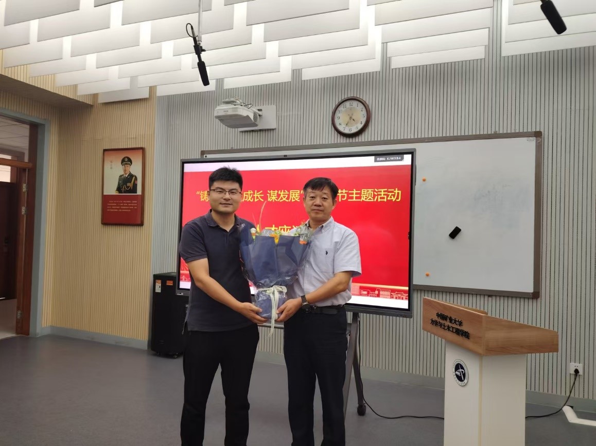 马占国做总结讲话,他指出没有高质量的教师队伍,就没有高质量的教育,学院始终把教师队伍建设作为核心工作,一以贯之在全院弘扬尊师重教的良好风尚,让学院全体教师安心从教、热心从教、舒心从教、静心从教,在岗位上有幸福感、事业上有成就感。他强调青年教师要努力做到以德立身、行为世范、坚守为党育人、为国育才的神圣使命,当好“四有”好老师和“四个引路人”。