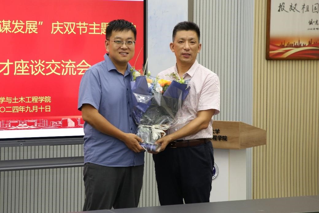 值第40个教师节和中秋节来临之际,2024年9月10日下午,学院在B201开展双节同庆主题活动,组织“铸师魂 促成长 谋发展”青年人才座谈交流会,院党委书记马占国主持会议,院长李树忱、副书记李智、副院长张营营、周劲锋、王迎超,长江学者青年学者陈伟、国家优秀青年基金获得者陈培见、校十佳辅导员张琳、18名青年教师代表出席会议。